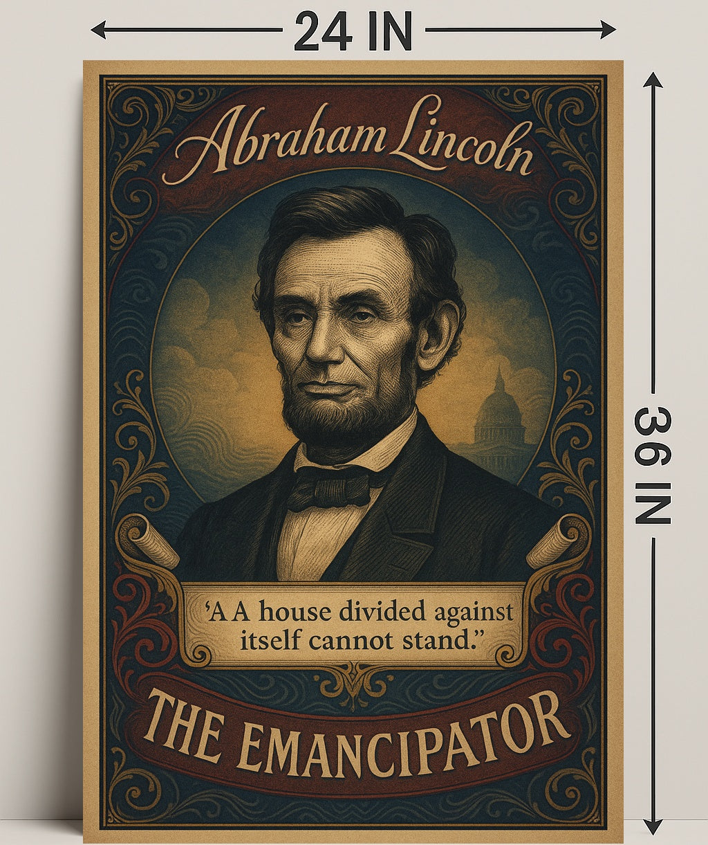 Timeless design & meaningful message: This print captures the dignified presence of Lincoln alongside the enduring quote “A house divided against itself cannot stand,” offering both historical resonance and inspirational decor that sparks conversation.