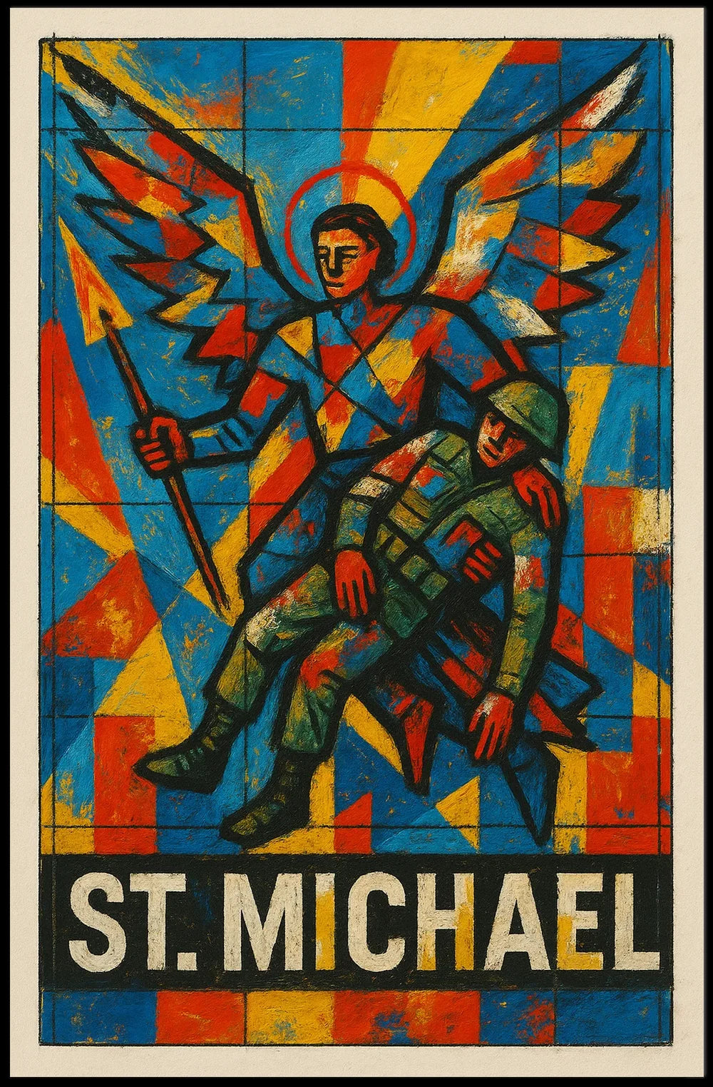 - Detailed design highlighting the fusion of realism and abstraction, with a bold palette of colorful and muted tones