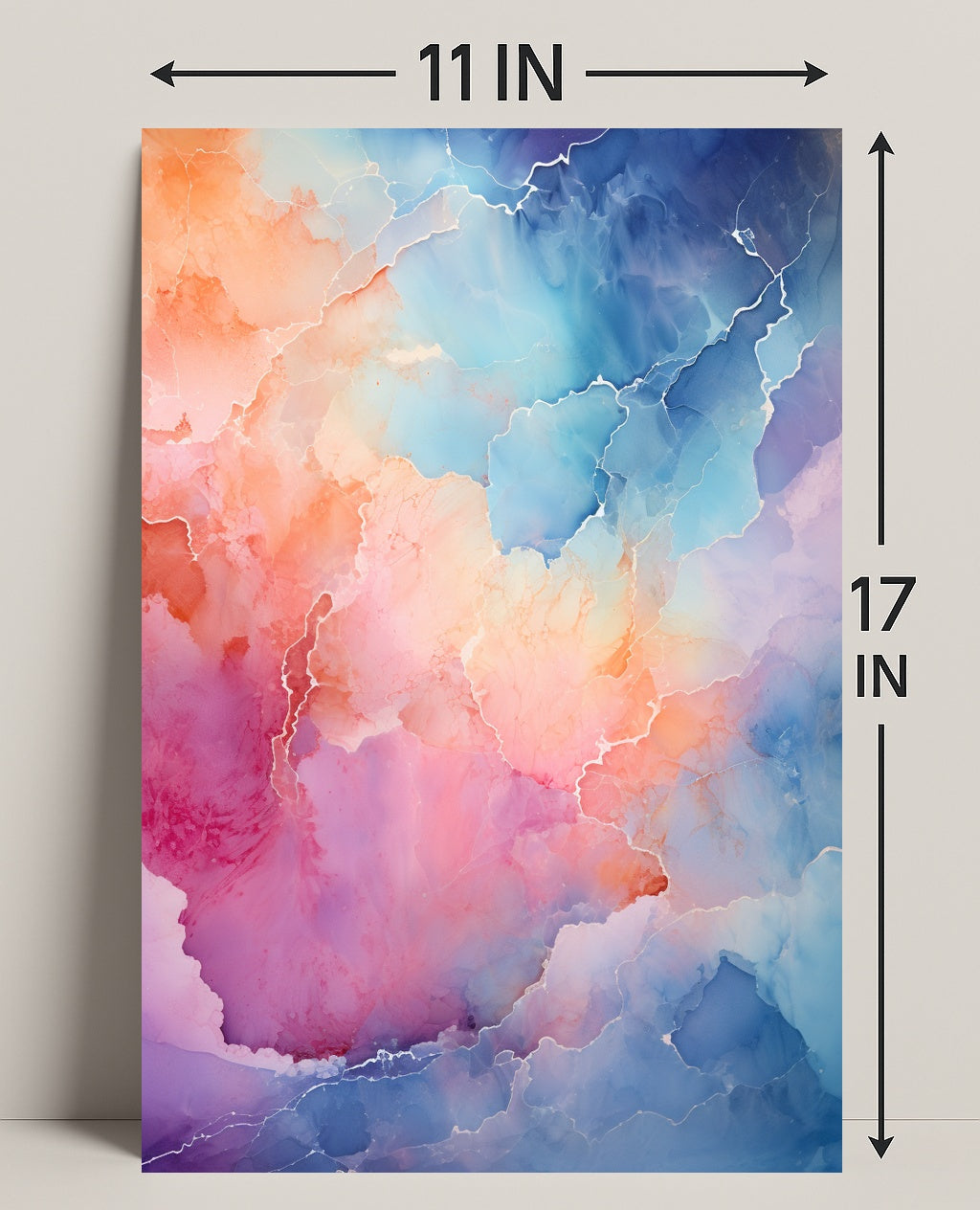 Abstract Color Symphony Abstract Poster from PosterGoat transforms any wall into a vibrant study of motion and light. This striking abstract poster blends watercolor-like washes of coral, rose, azure and indigo with delicate metallic veining to create a dreamy, landscape-inspired composition that feels both energetic and serene.