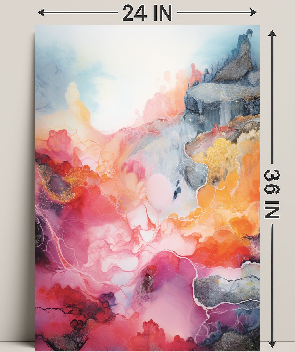 Bring movement and color to your walls with the Abstract Colorful Waves Abstract Poster from PosterGoat. This vibrant abstract poster blends flowing, wave-like forms with soft gradients — pinks, corals, golden yellows and cool blues — to create a luminous, surreal composition that reads like liquid landscape. Perfect for living rooms, bedrooms, offices or gallery walls, it adds instant energy and artistic flair to any decor.