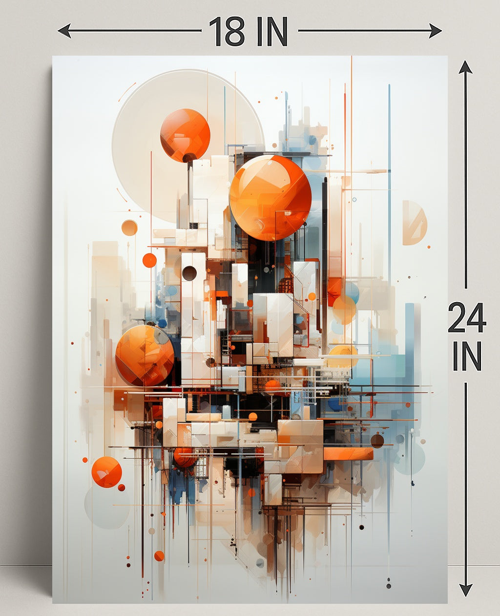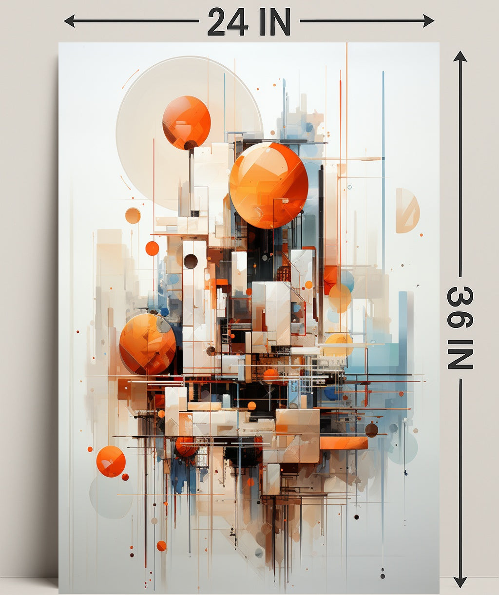 Bring modern artistry and architectural precision to your walls with the Abstract Geometric Composition Abstract Poster from PosterGoat. This striking poster blends bold orange spheres, crisp geometric lines and layered translucent planes to create a dynamic focal point that elevates any living room, office, or gallery wall.