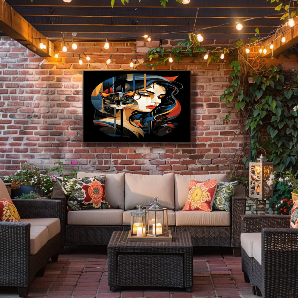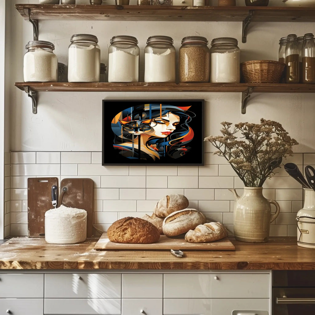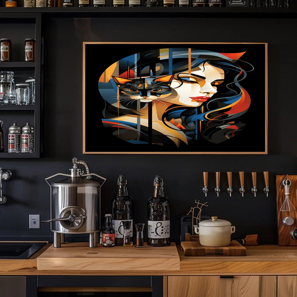 - Abstract Harmony motif blends color and shape to create a calming focal point.