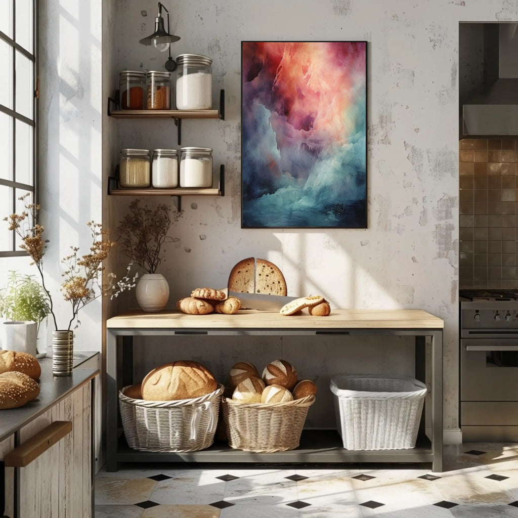 Bring the drama of nature into your home with the Abstract Landscape Abstract Poster from PosterGoat — a mesmerizing, high-impact poster that blends sweeping, dreamy textures with a rich palette of coral, rose, teal and deep navy to create a scenic, otherworldly landscape that feels both tranquil and alive.