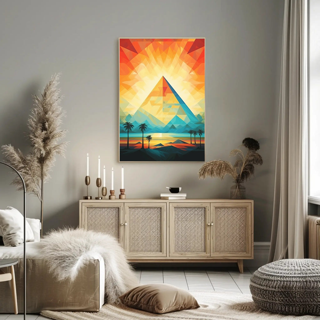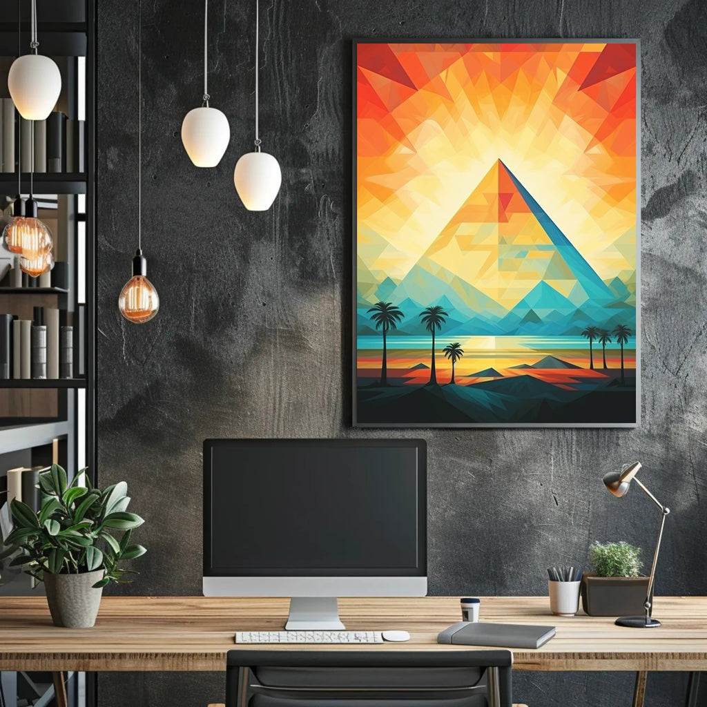 Discover the beauty of the Abstract Pyramid Landscape Poster, a stunning piece of wall art that effortlessly captures the essence of nature's grandeur. Perfect for decor lovers and adventurers alike, this art print brings a splash of color and inspiration into any room. Let the vibrant visuals transport you to a world of scenic wonder, igniting your wanderlust every time you glance at it.