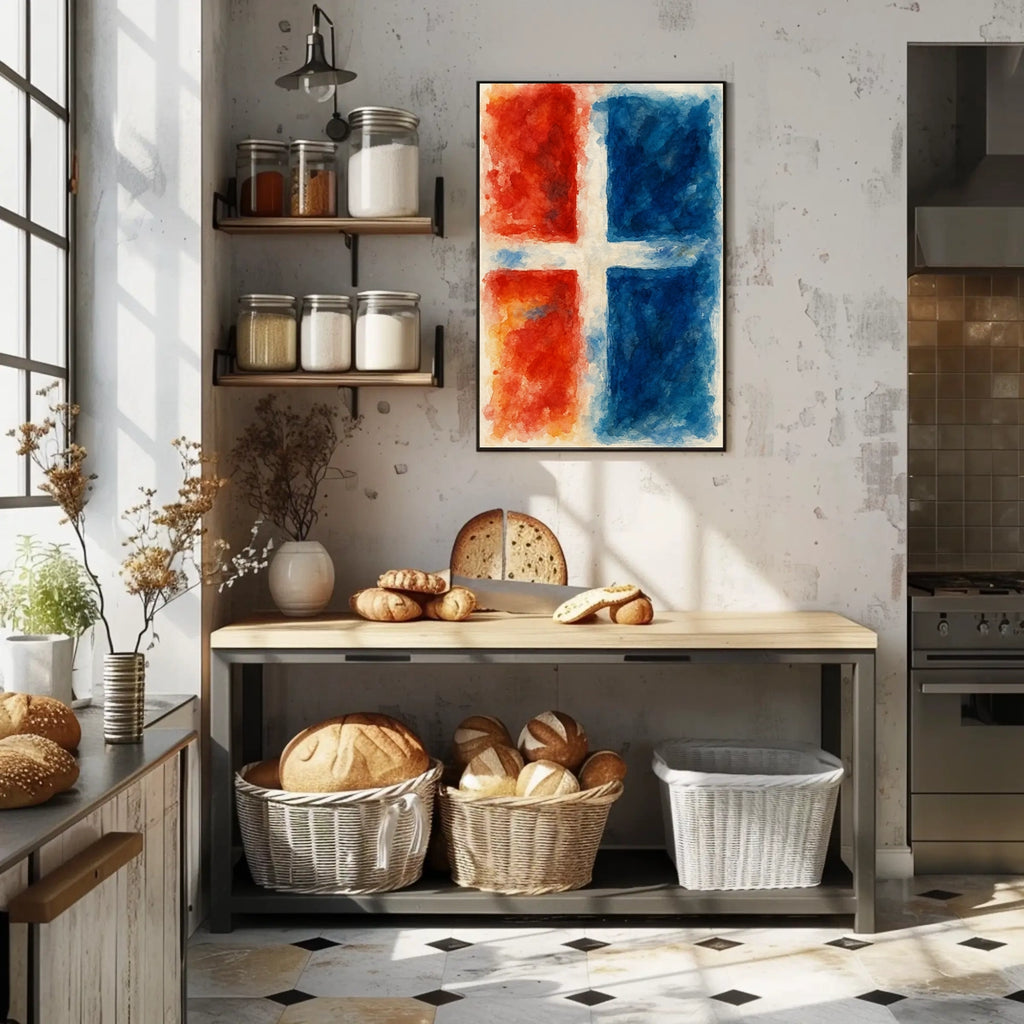 This poster captures the essence of Abstract Red and Blue Composition, adding charm to any space and serving as a timeless focal point for art lovers and style seekers alike.
