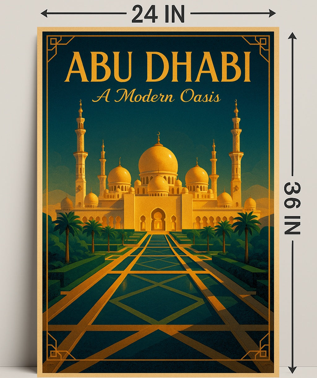 Specifications: SKU MWW-AA-02 • Poster theme: Art & Aesthetic • Styles: Mid-Century Modern, Minimalist • Poster subtheme: Abu Dhabi, Modern, Oasis.