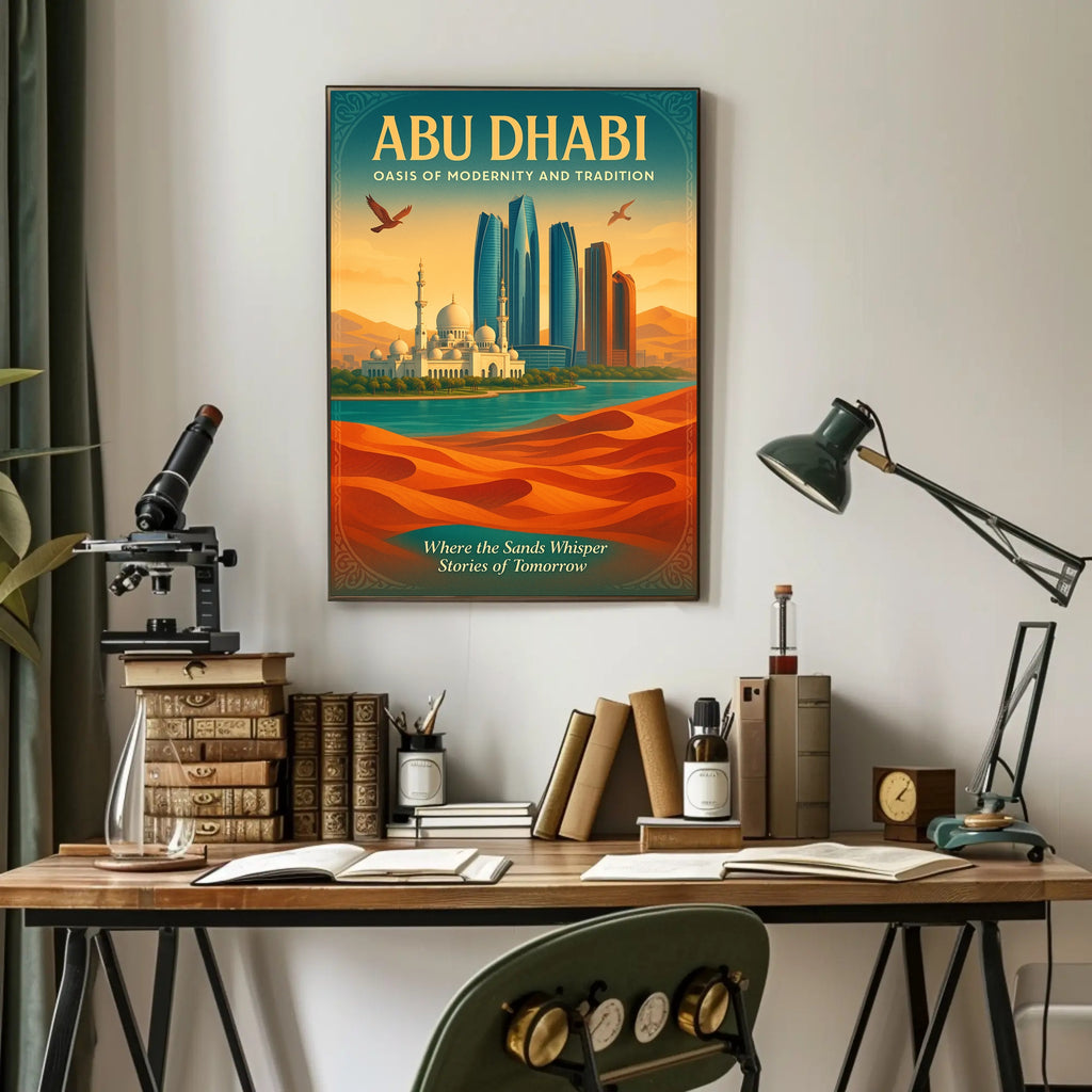 Add the Abu Dhabi Fusion of Tradition and Progress poster to your collection today — transform your space with a travel-worthy print from PosterGoat that celebrates the harmony of past and future. Order now to bring this inspiring piece of abu dhabi poster art into your home.