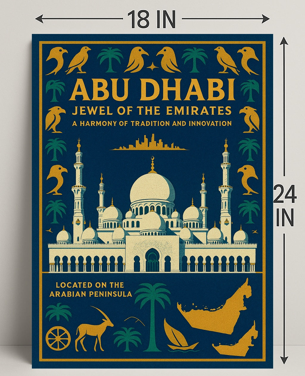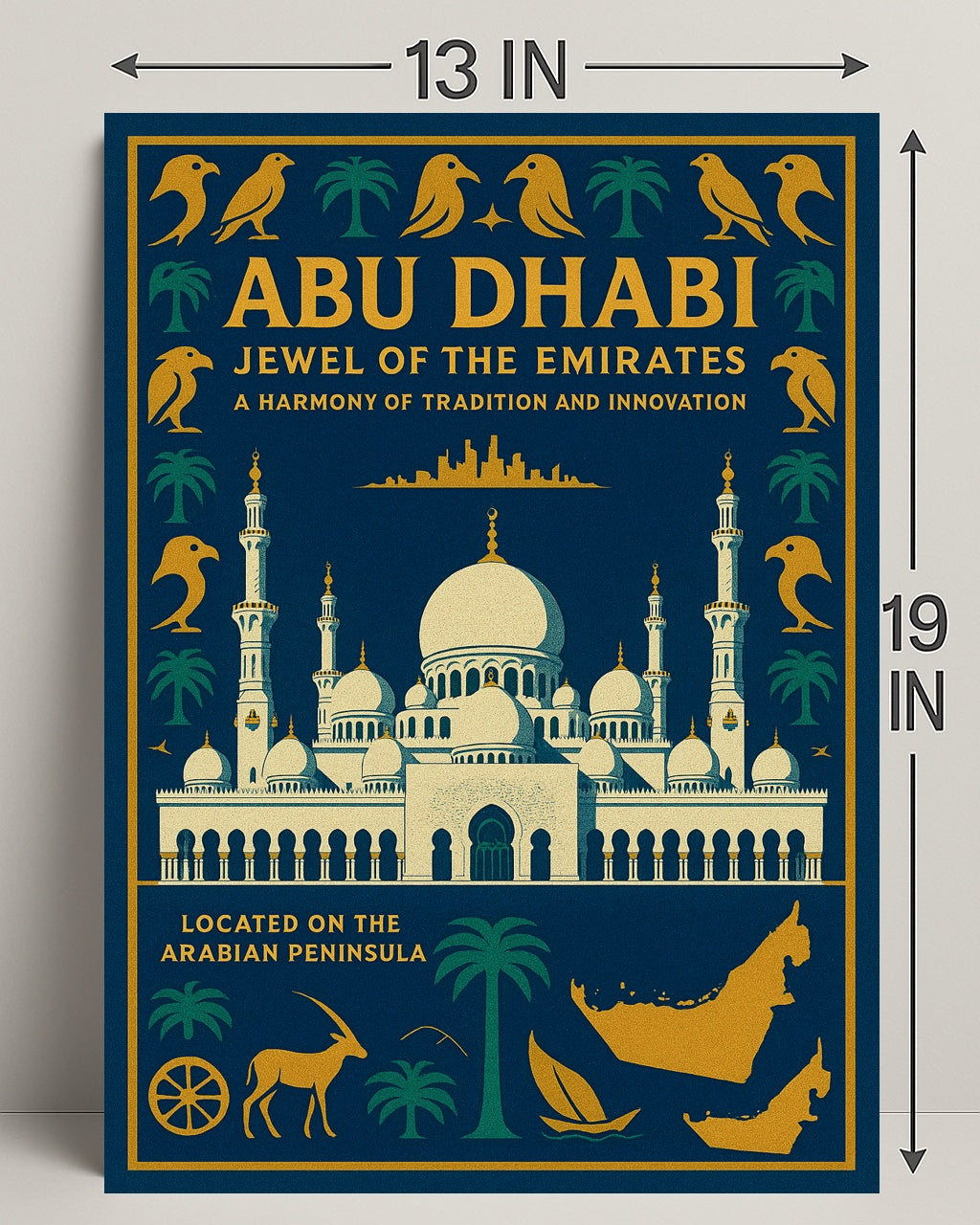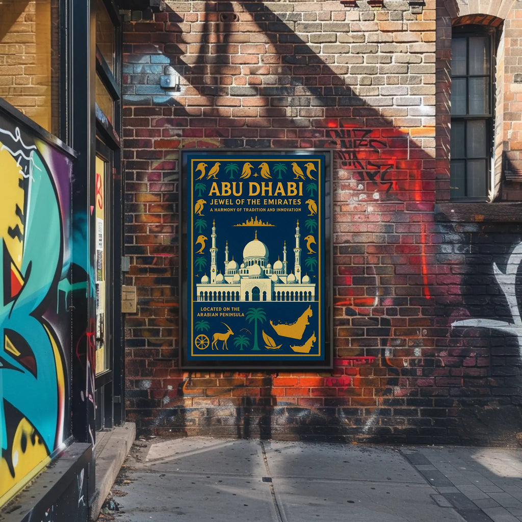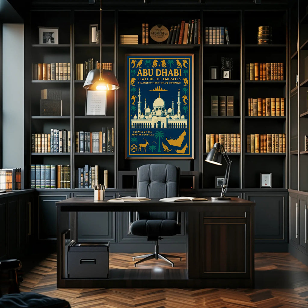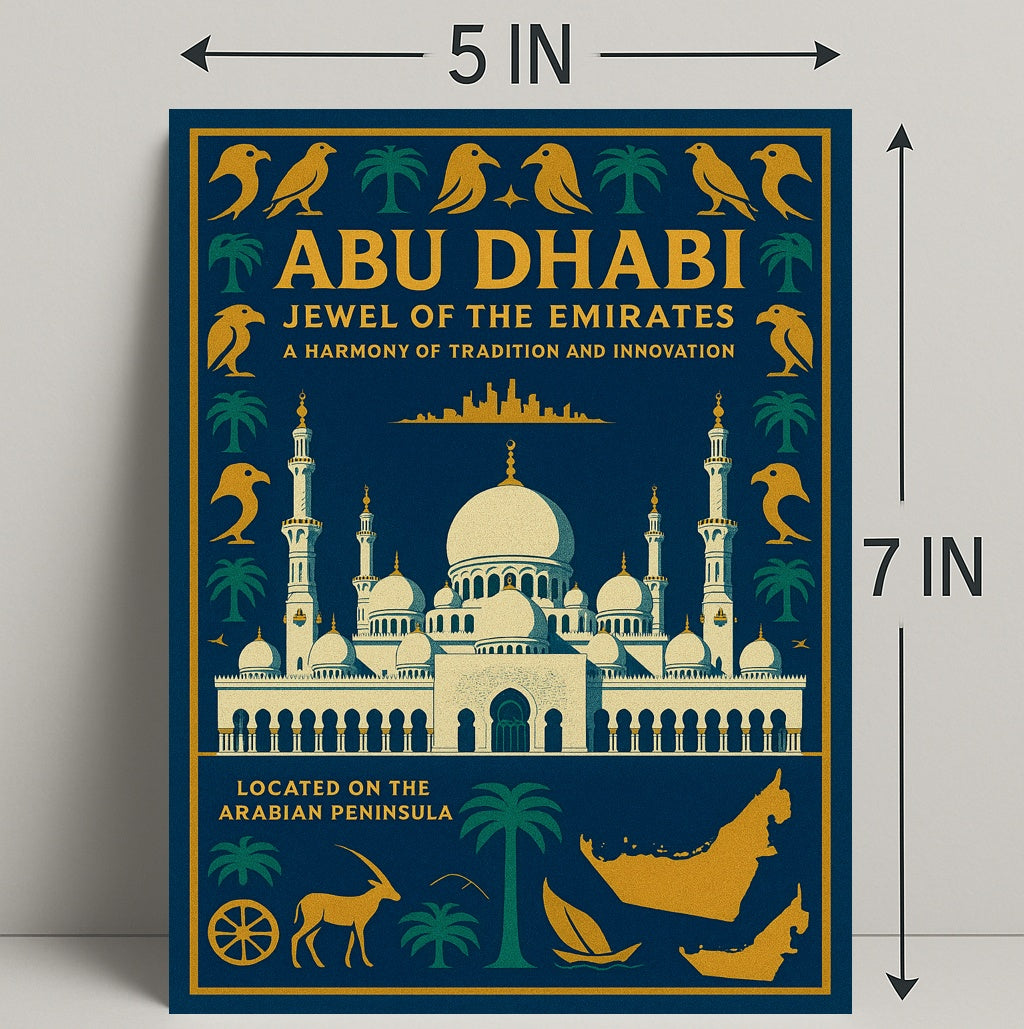 Why collectors love it: This poster functions as both a decorative accent and a cultural keepsake — a sophisticated souvenir that celebrates Abu Dhabi’s heritage and modern spirit. Its striking color palette and balanced composition make it easy to match with a variety of frames and interiors.