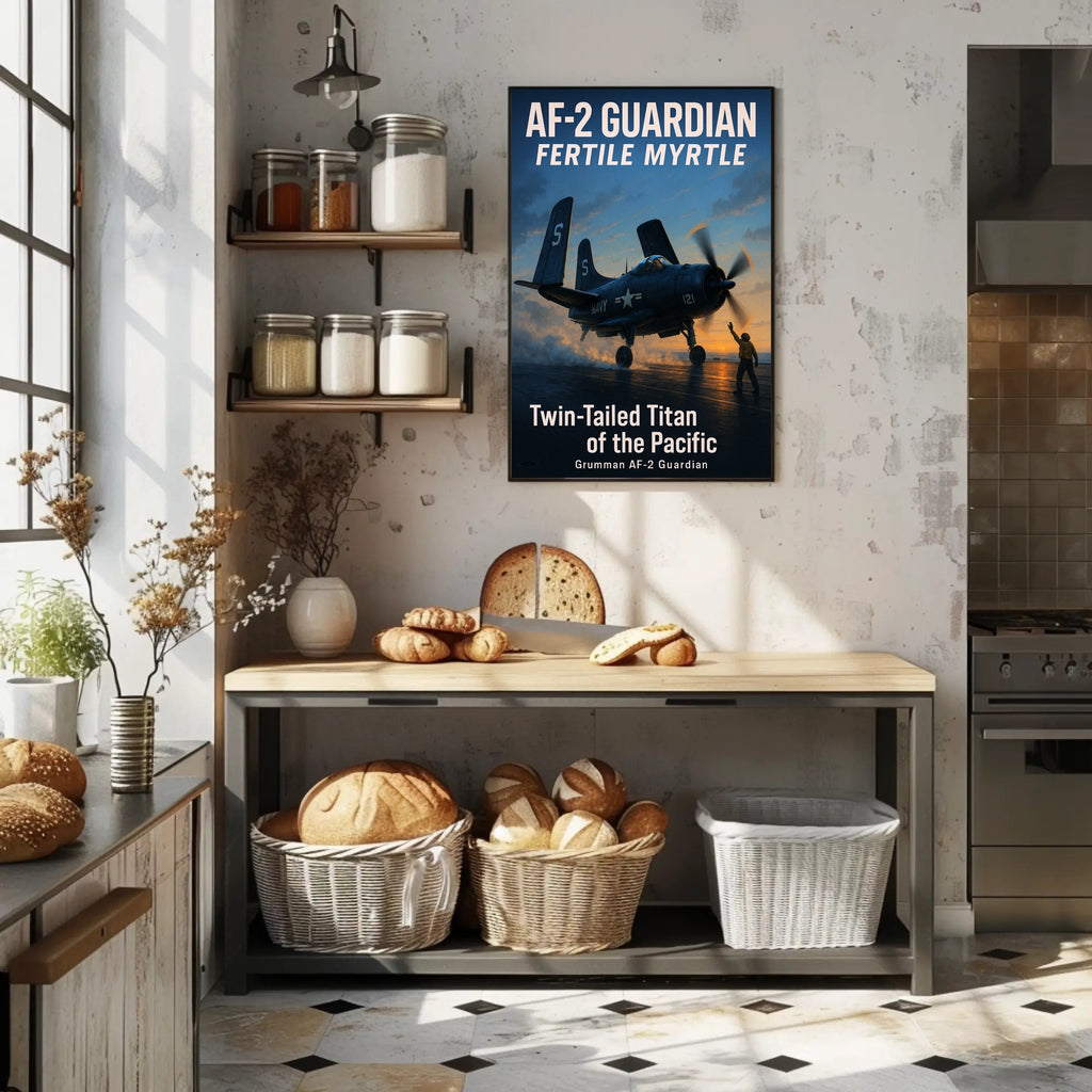 Authentic aviation appeal: Realistic artwork celebrating the Grumman AF-2 Guardian — perfect for aviation enthusiasts, nautical art collectors, and travel-themed decor.