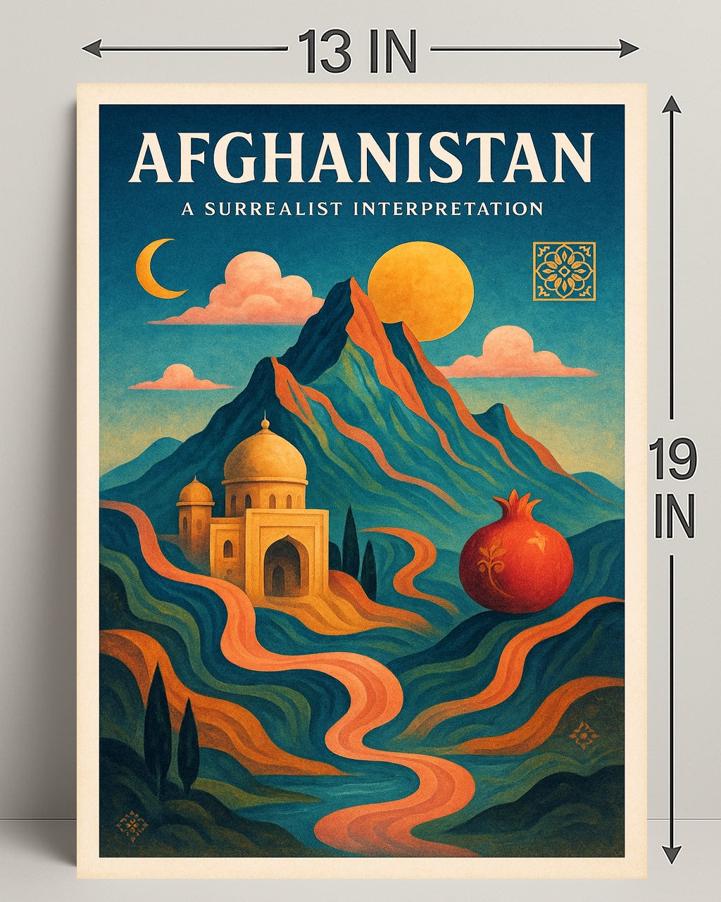 Bring it home: Add this Afghanistan: A Surrealist Interpretation poster to your collection and transform your wall into a window of wonder—shop PosterGoat now to own a piece that sparks curiosity and style.