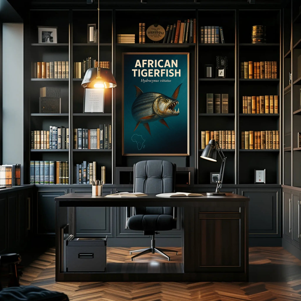 - Bold wildlife subject featuring the African Tigerfish Hydrocynus vittatus, delivering a striking focal point for any wall.
