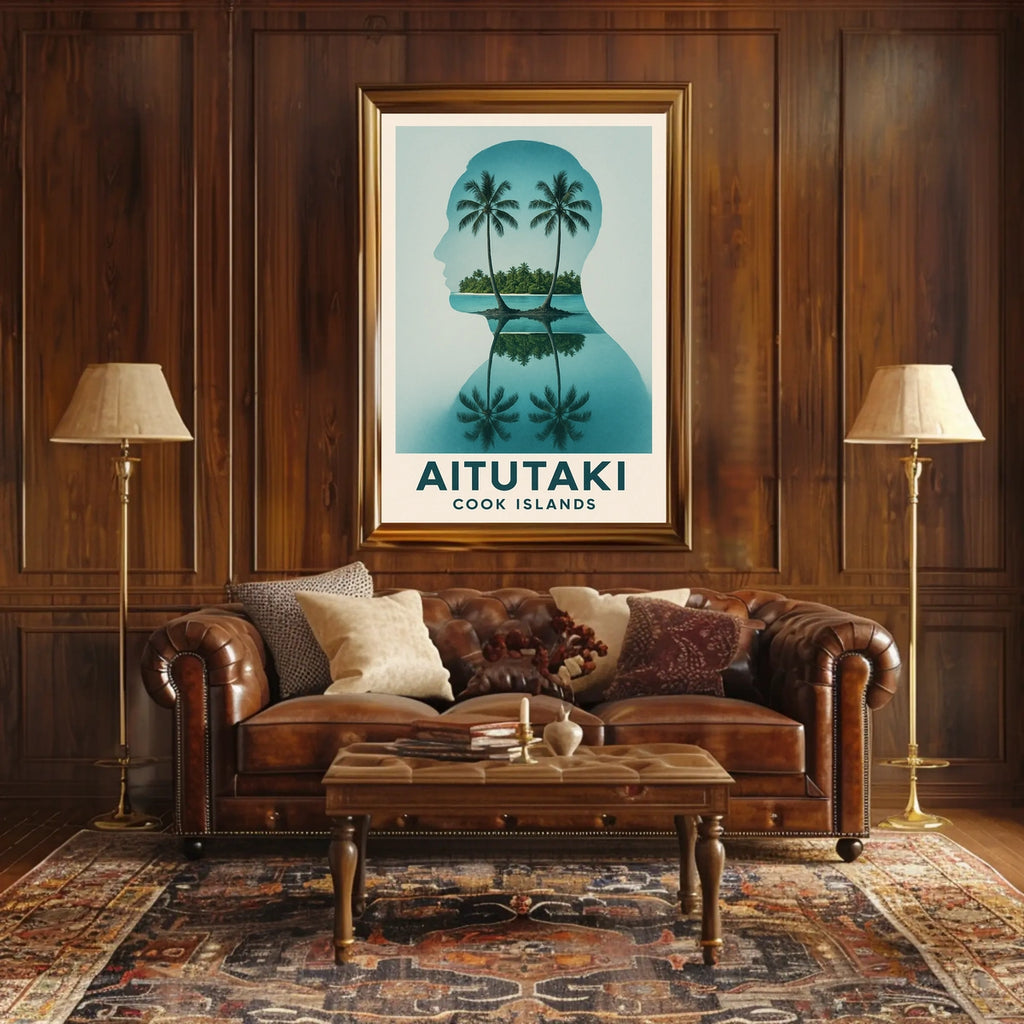 - Detailed design highlighting the turquoise lagoons and tropical scenery of Aitutaki