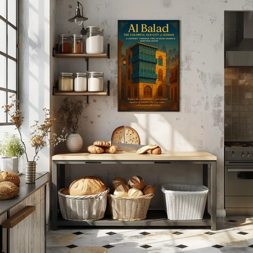 Transform your space with a splash of Jeddah's color and history. This poster is a thoughtful addition to any wall art collection and a stylish reminder to wander freely. Shop now and bring Al Balad's vibrant spirit home today.