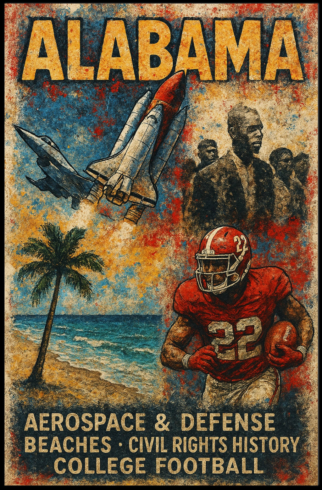 Printed with precision and made to inspire, this artwork is more than decoration—it’s a conversation piece that connects history, culture, and style. Bring Alabama A Tapestry of Heritage and Progress Poster into your home, classroom, or office today and let your walls tell a powerful story.