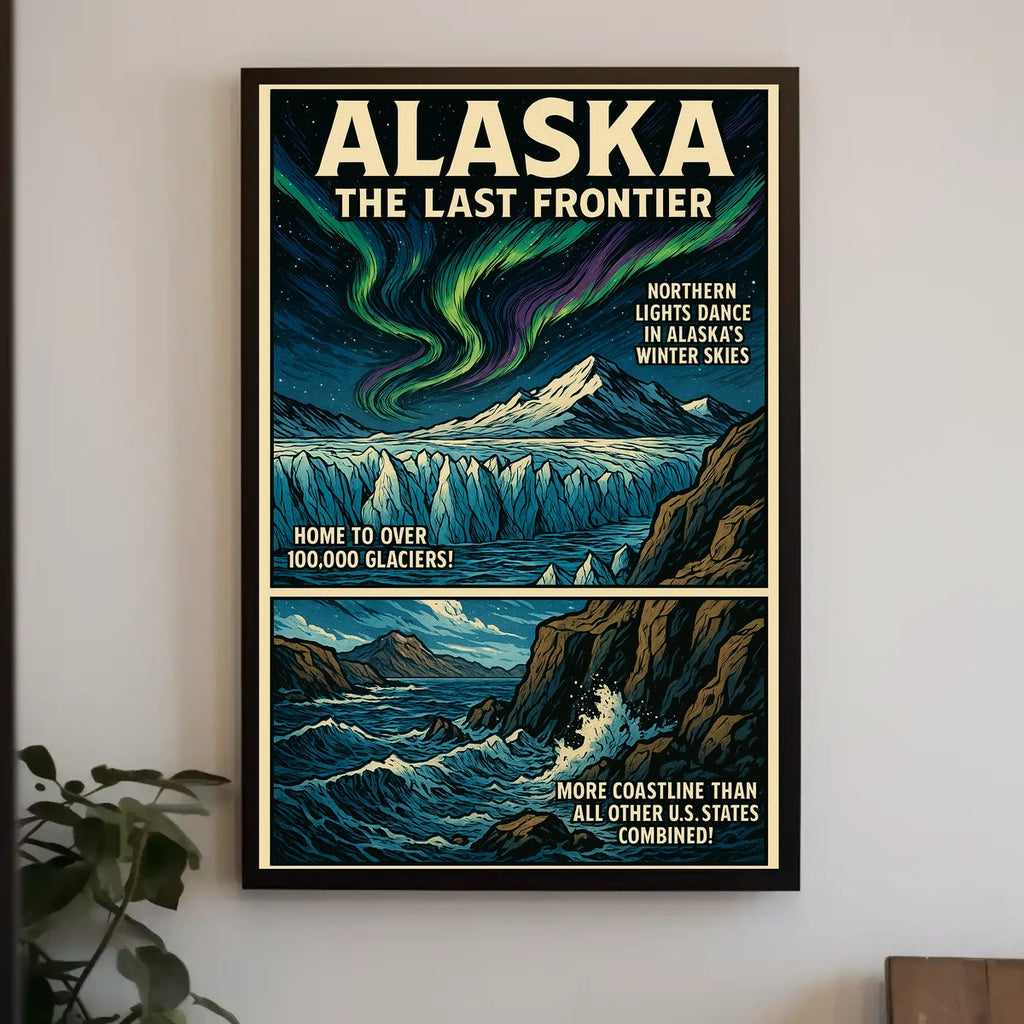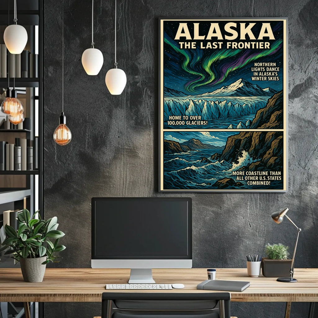 Printed with precision and made to inspire, this artwork is more than decoration—it’s a conversation piece that connects history, culture, and style. Bring Alaska The Last Frontier Poster into your home, classroom, or office today and let your walls tell a powerful story.
