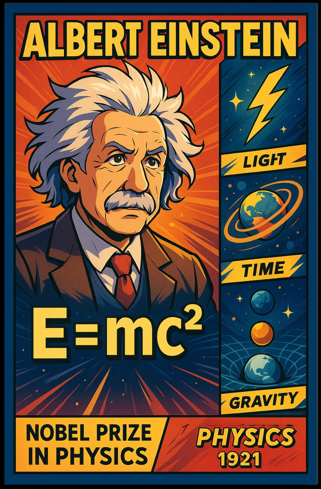 - Detailed design highlighting Einstein's Nobel Prize in Physics 1921 and scenic, iconic scientific imagery
