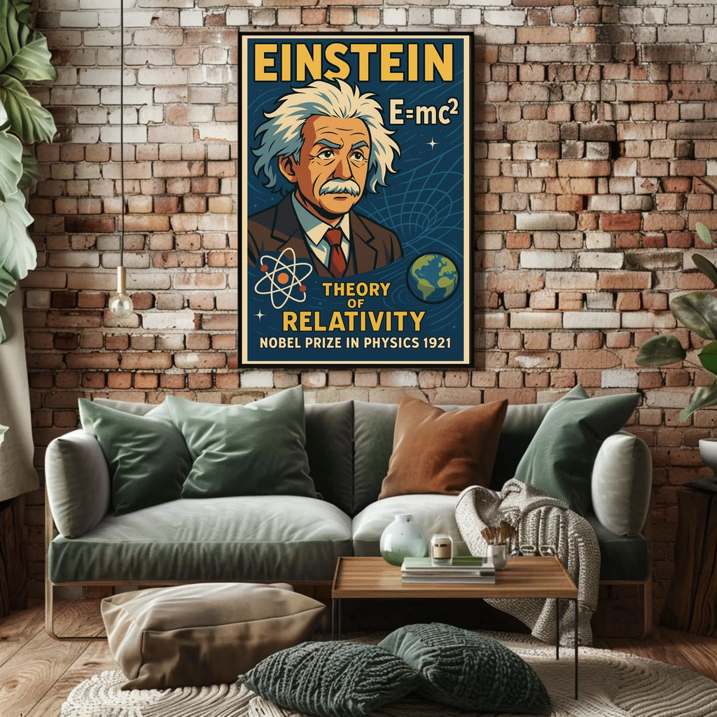 - Detailed design highlighting the Nobel Prize in Physics 1921 moment and Einstein’s iconic portrait