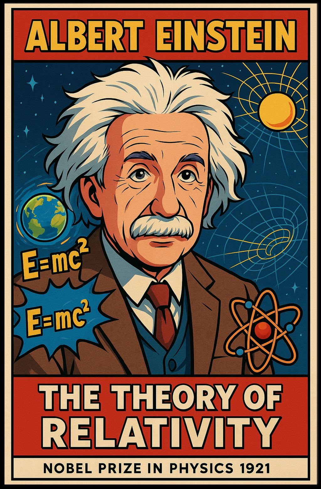 Detailed design highlighting Einstein's iconic theory and its vintage-science aesthetic
