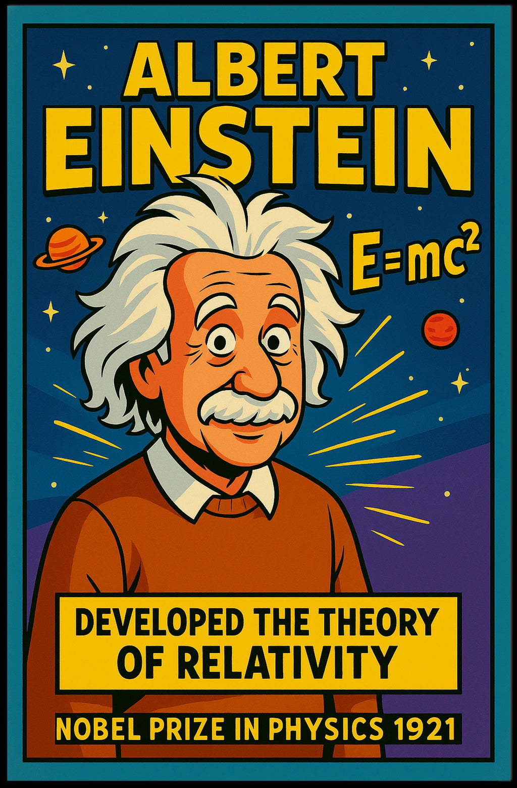 - Detailed design highlighting iconic elements of the relativity concept and vintage science aesthetics