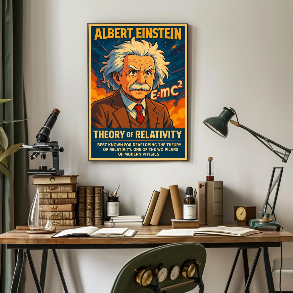 Whether decorating a study, living room, classroom, or workspace, this poster adds charm and a sense of discovery to any environment. Embrace the timeless allure of Einstein’s relativity and let your walls spark curiosity and conversation.