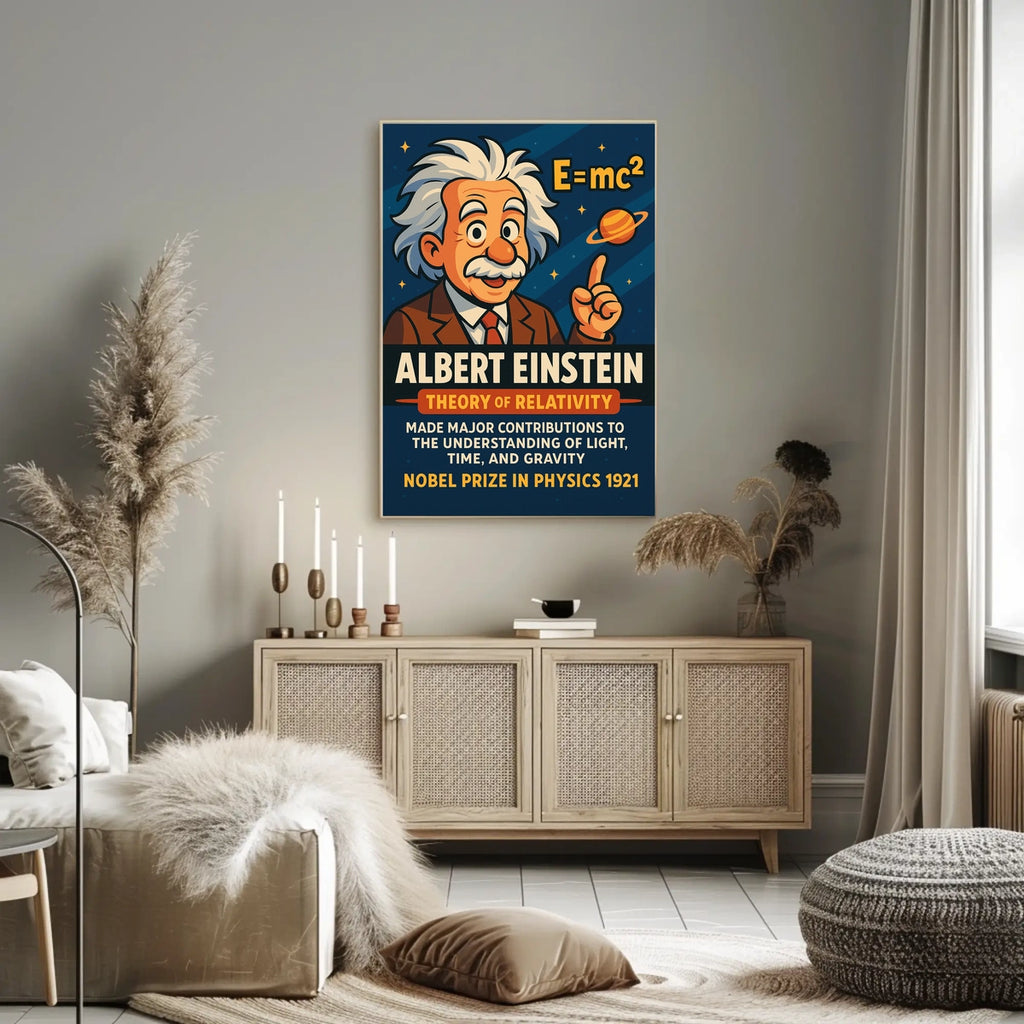 This poster captures the essence of Albert Einstein Theory of Relativity, blending scientific awe with visuals inspired by real-world scenery. It adds charm to any room and invites curiosity, conversation, and a dash of intellectual wonder.