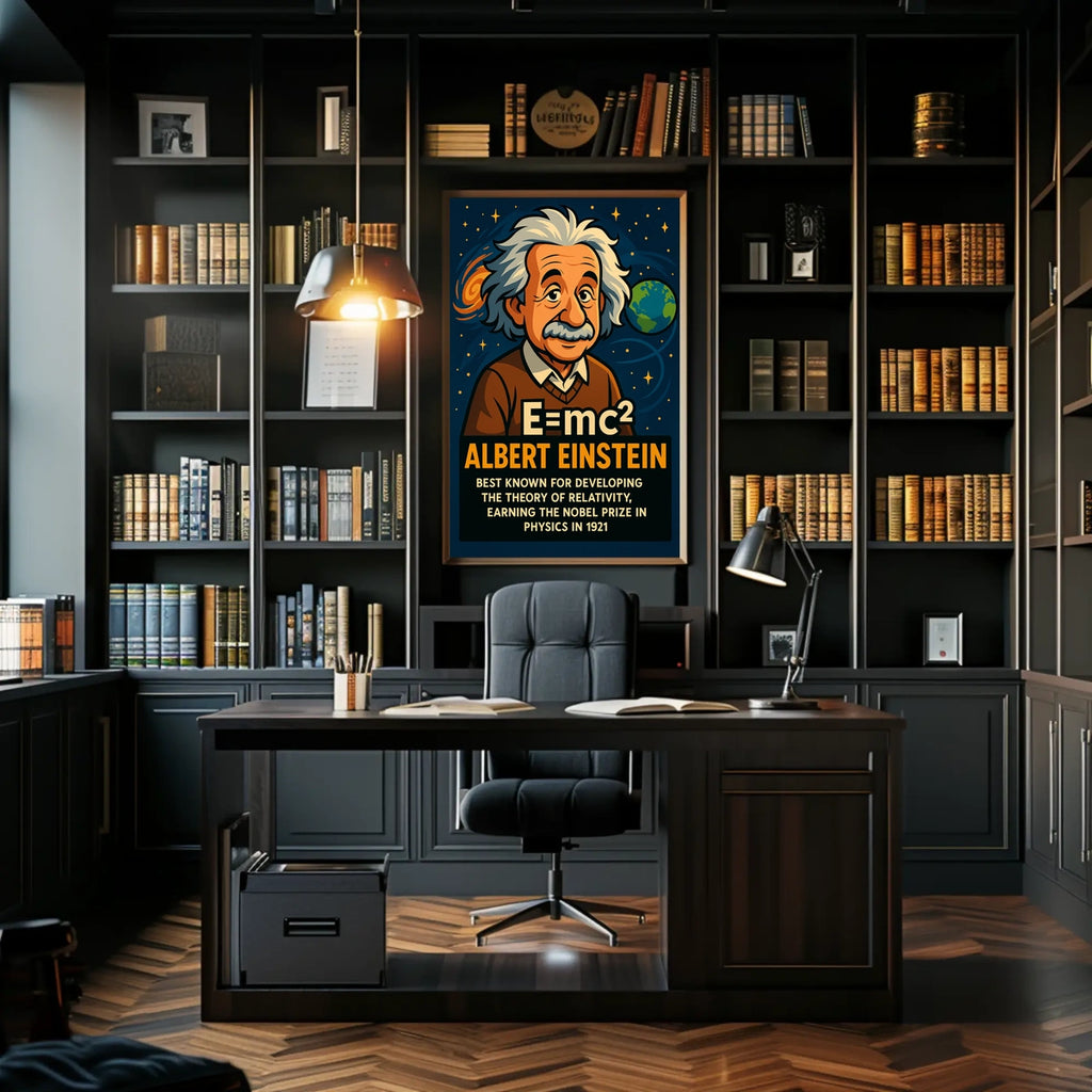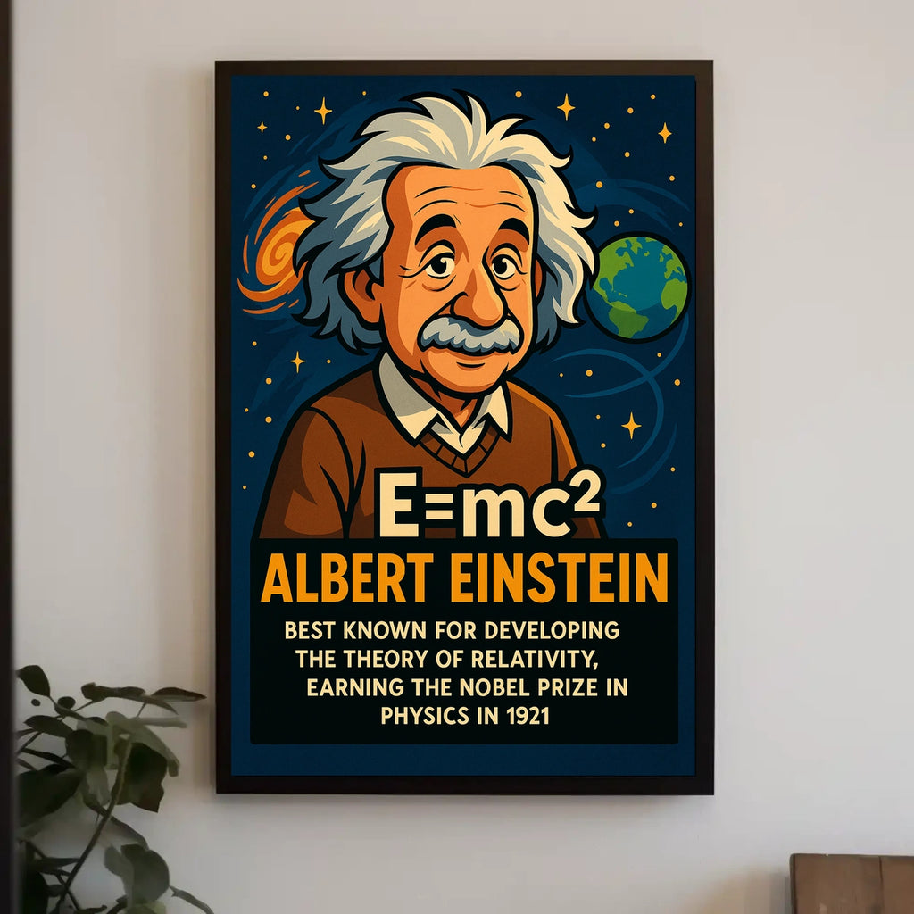 This art print captures the essence of Einstein's theory while pairing it with visuals inspired by real-world scenery, making it a versatile addition to any room, classroom, or office.