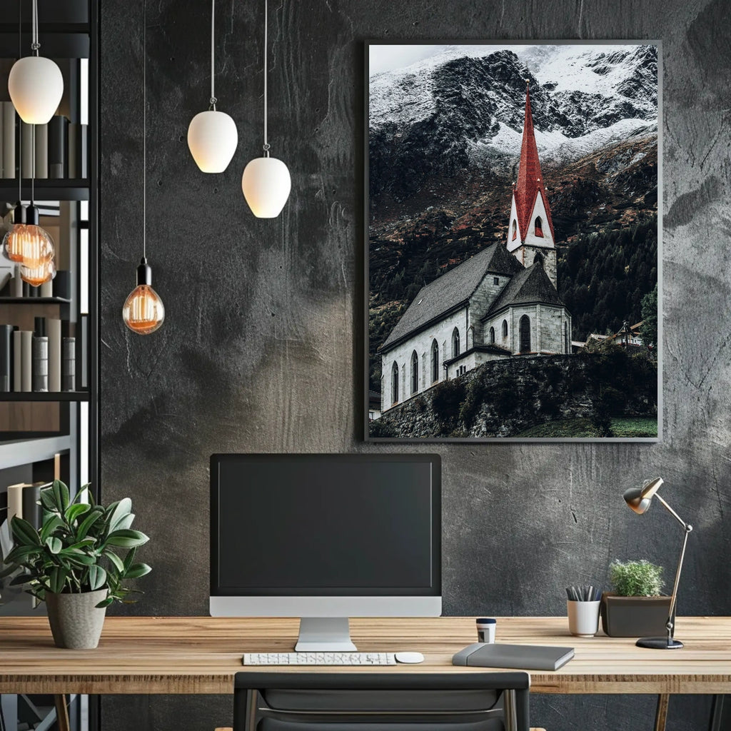 - Printed with precision and made to inspire, this artwork is more than decoration—it’s a conversation piece that connects scenery, culture, and style. Bring Alpine Church In Winter into your home, classroom, or office today and let your walls tell a powerful story.