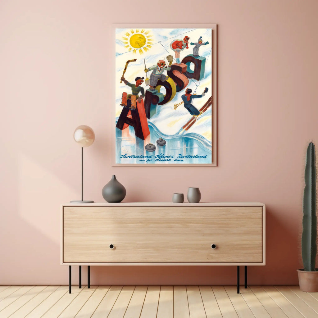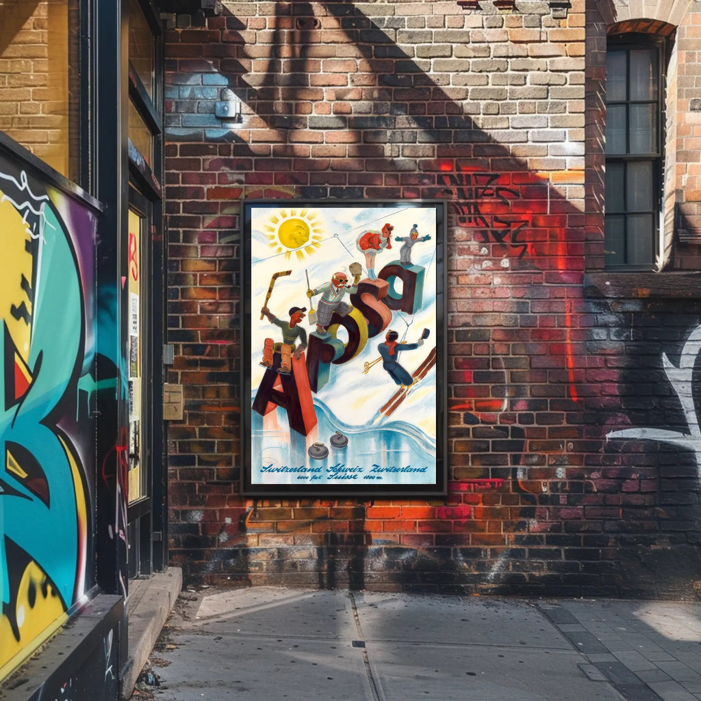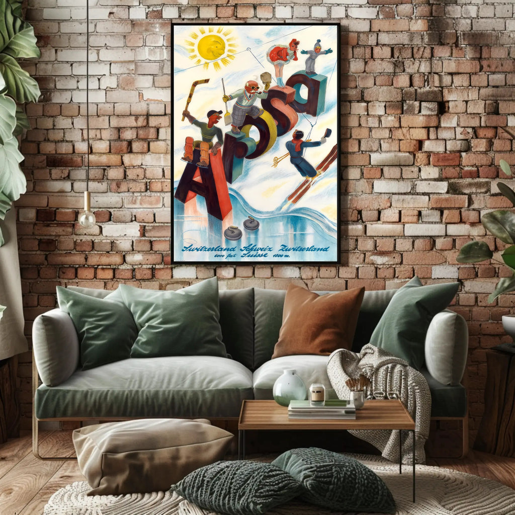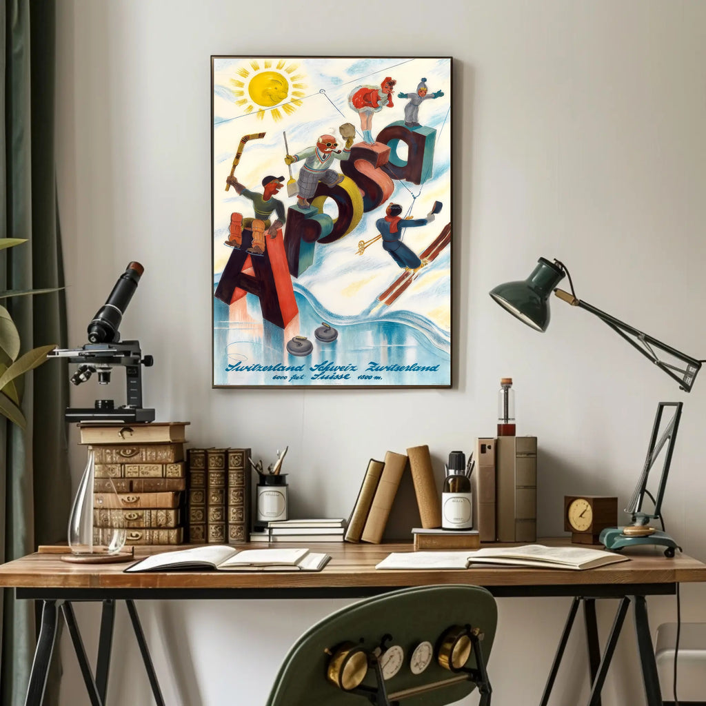 Why you’ll love it: This poster combines nostalgic travel-poster charm and bold, playful imagery to celebrate outdoor adventure — a versatile piece that elevates wall decor while sparking conversation about alpine sports and scenic travel.