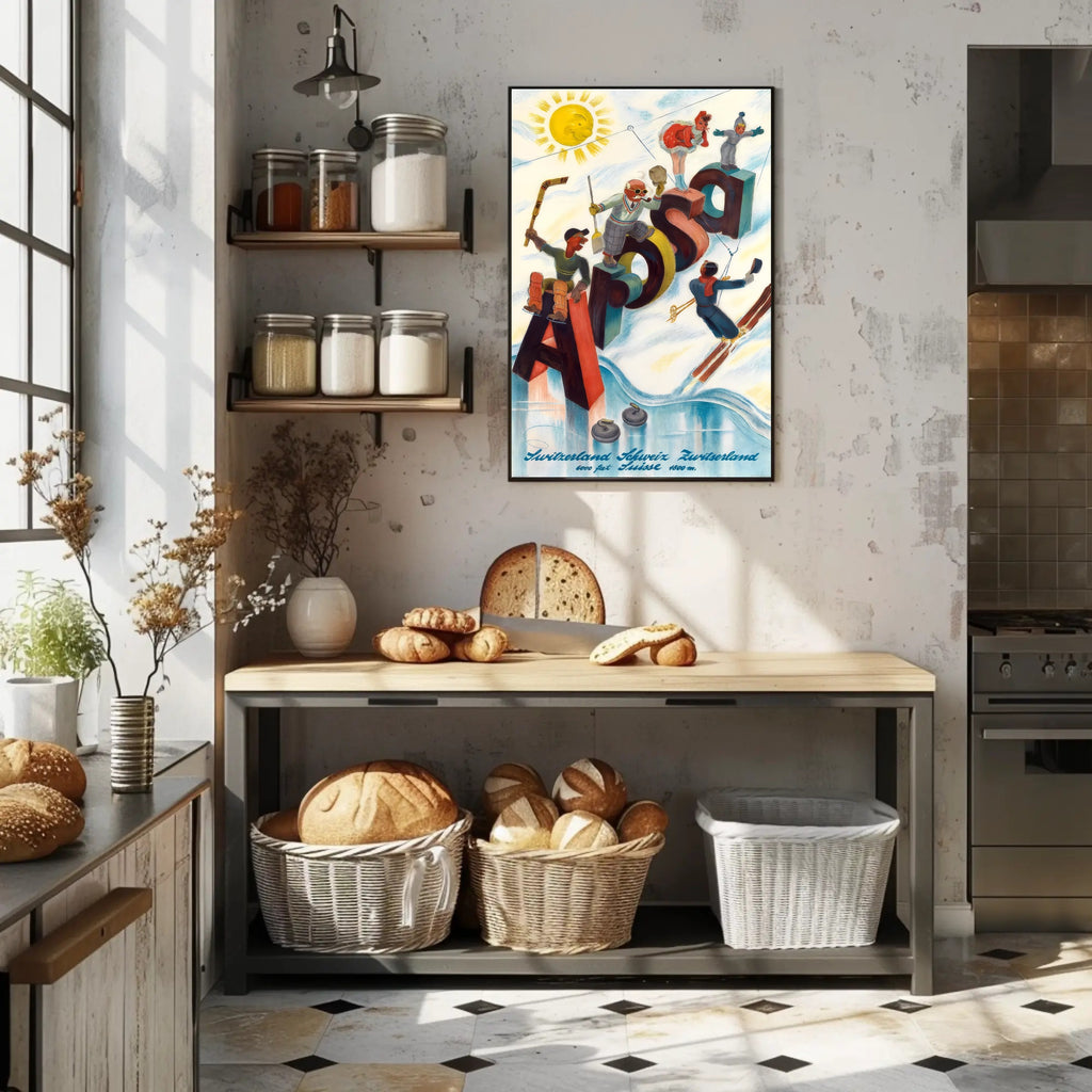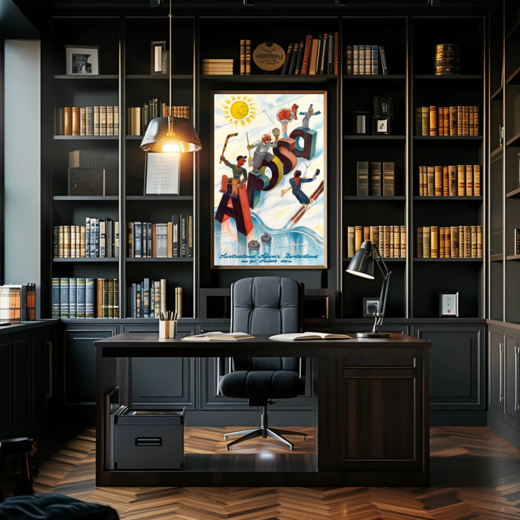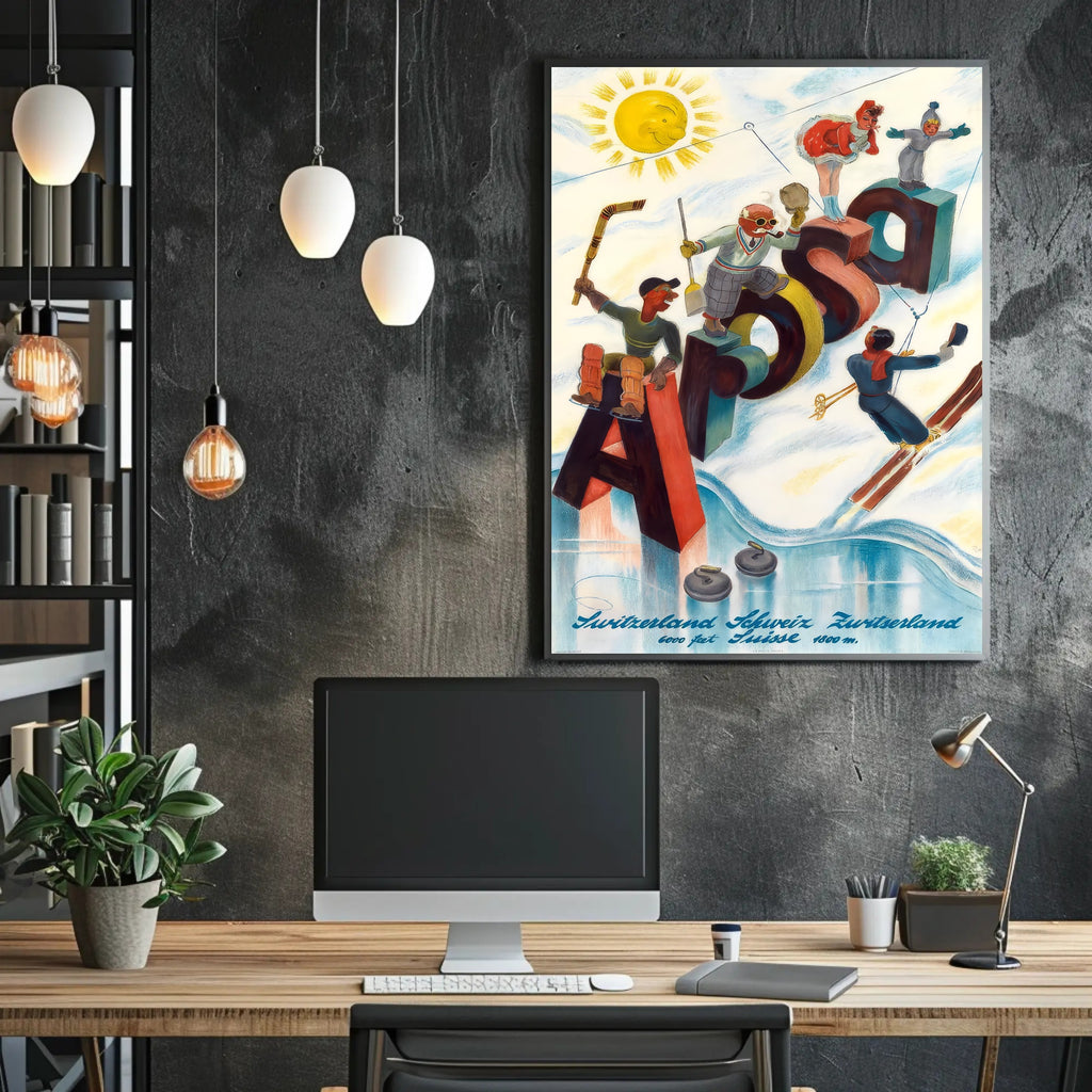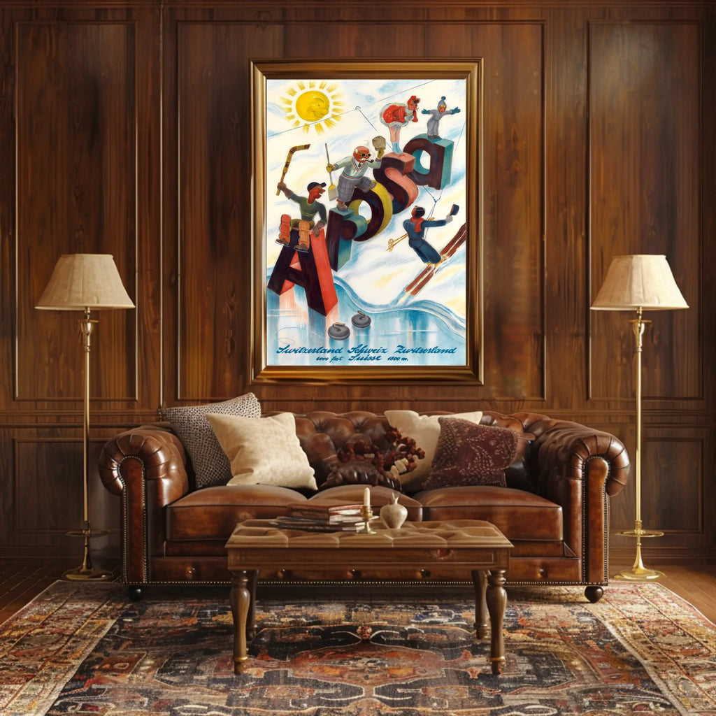 Why you’ll love it: This poster combines nostalgic travel-poster charm and bold, playful imagery to celebrate outdoor adventure — a versatile piece that elevates wall decor while sparking conversation about alpine sports and scenic travel.
