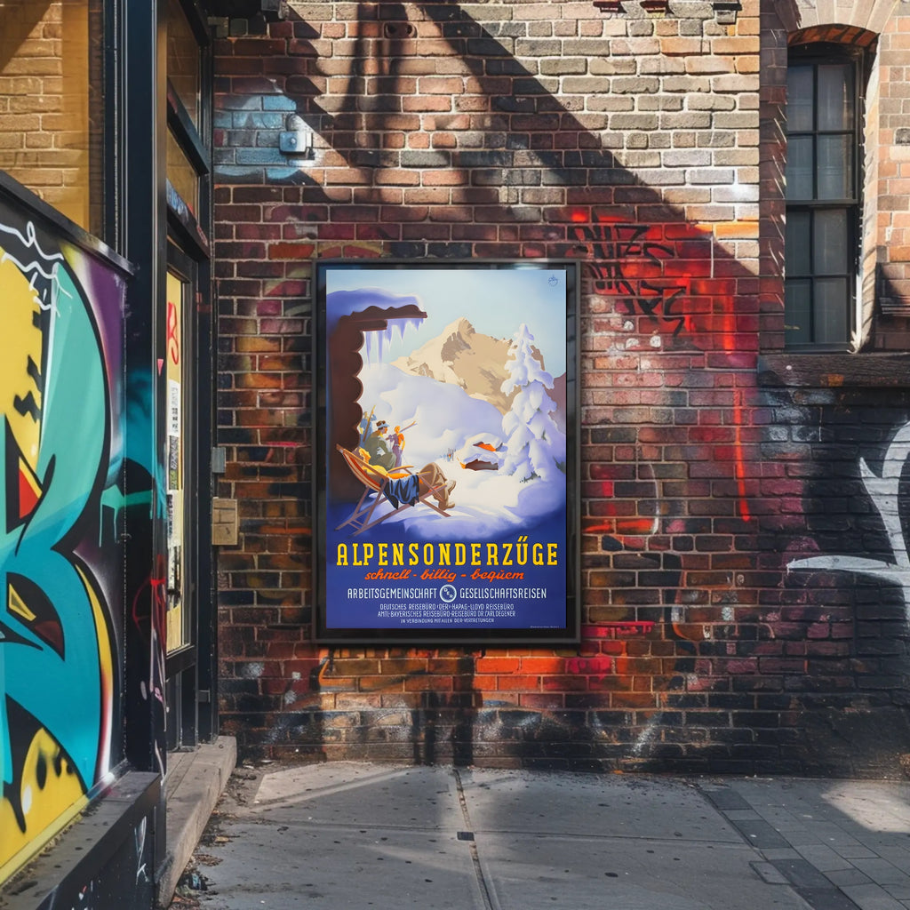 Add a vintage alpine atmosphere to your space with a PosterGoat classic — order your Alpine Winter Excursion Travel Poster now and transform any wall into a sunlit mountain retreat.