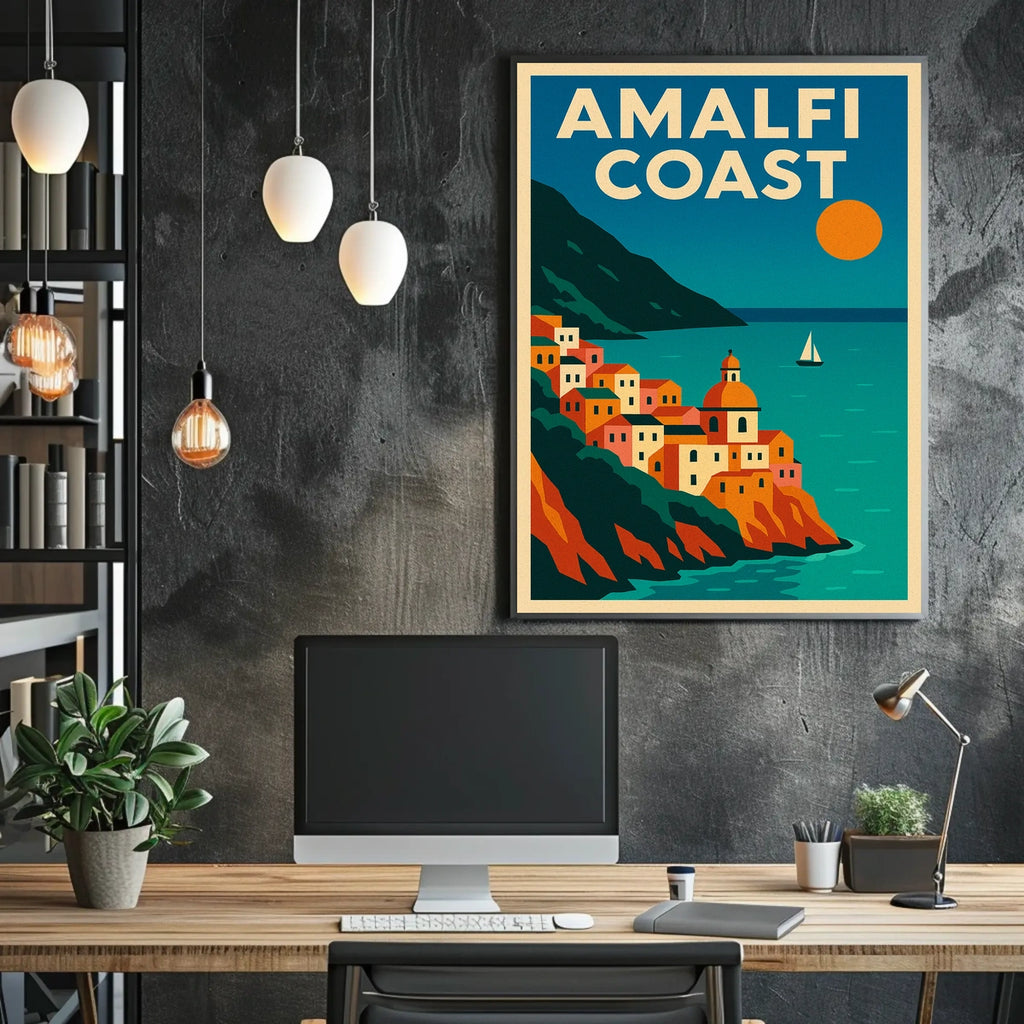 Amalfi Coast A Scenic Escape Poster captures the essence of the Amalfi Coast, designed for decor lovers and wanderlust spirits. This art print adds charm to any room with visuals inspired by real-world scenery.