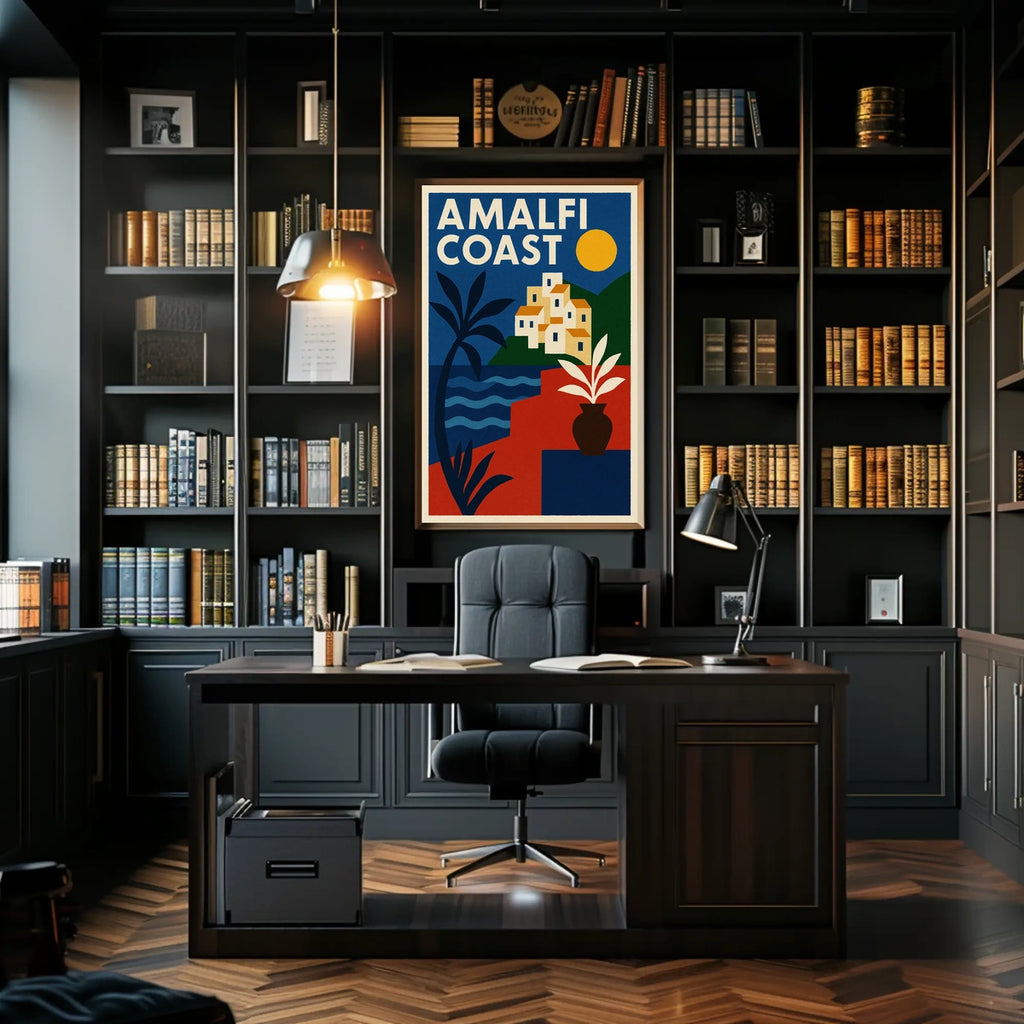 Designed for collectors and enthusiasts, this poster brings the spirit of the Amalfi Coast into your space. Its coastal motif complements living rooms, bedrooms, hallways, and workspaces with a touch of coastal elegance.
