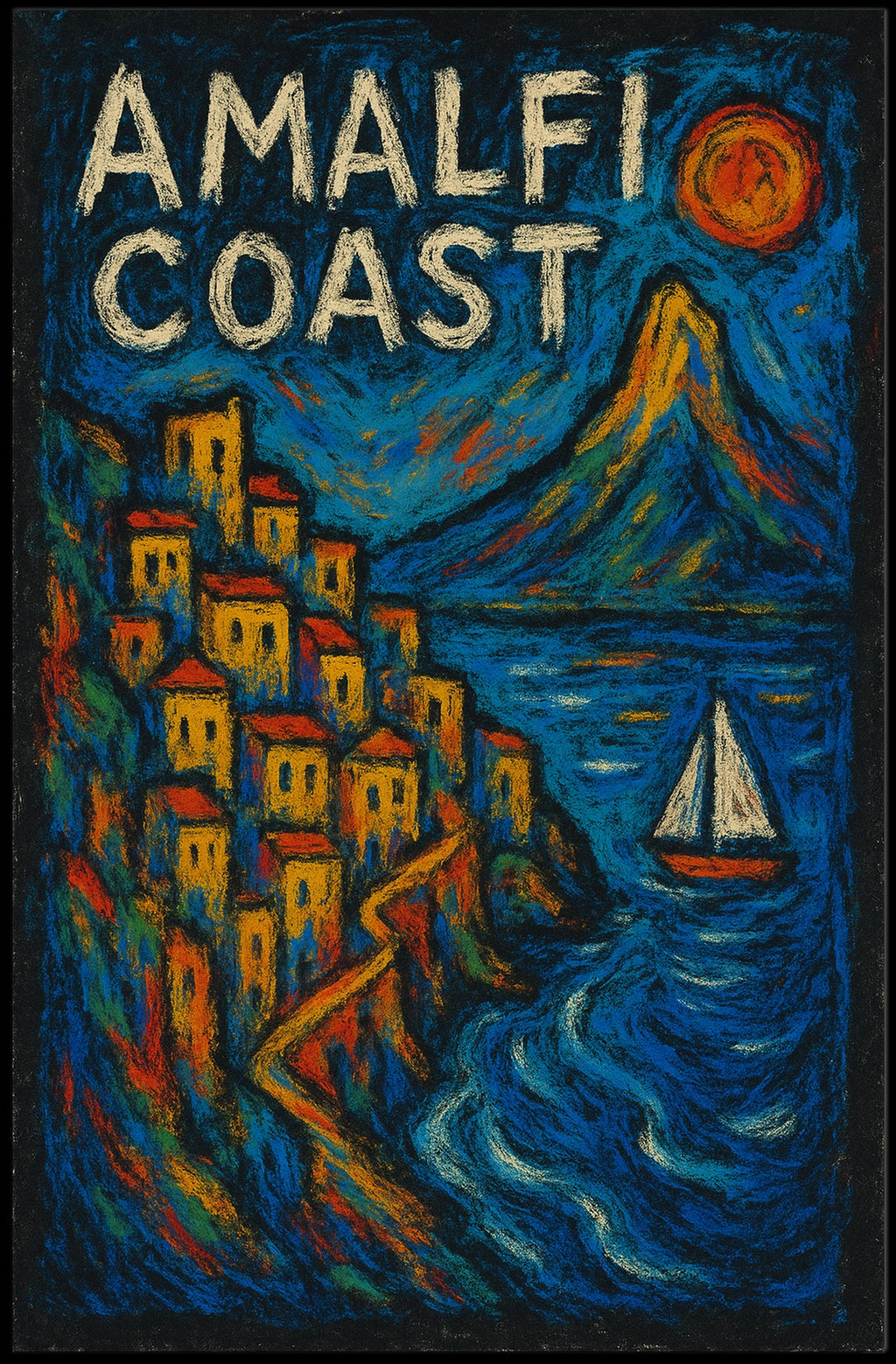 Celebrate the beauty of Amalfi Coast A Vibrant Escape Poster with this timeless wall art. Designed to capture its unique appeal, this piece is perfect for decor lovers and wanderlust spirits, or anyone who wants to bring meaning and inspiration into their space.