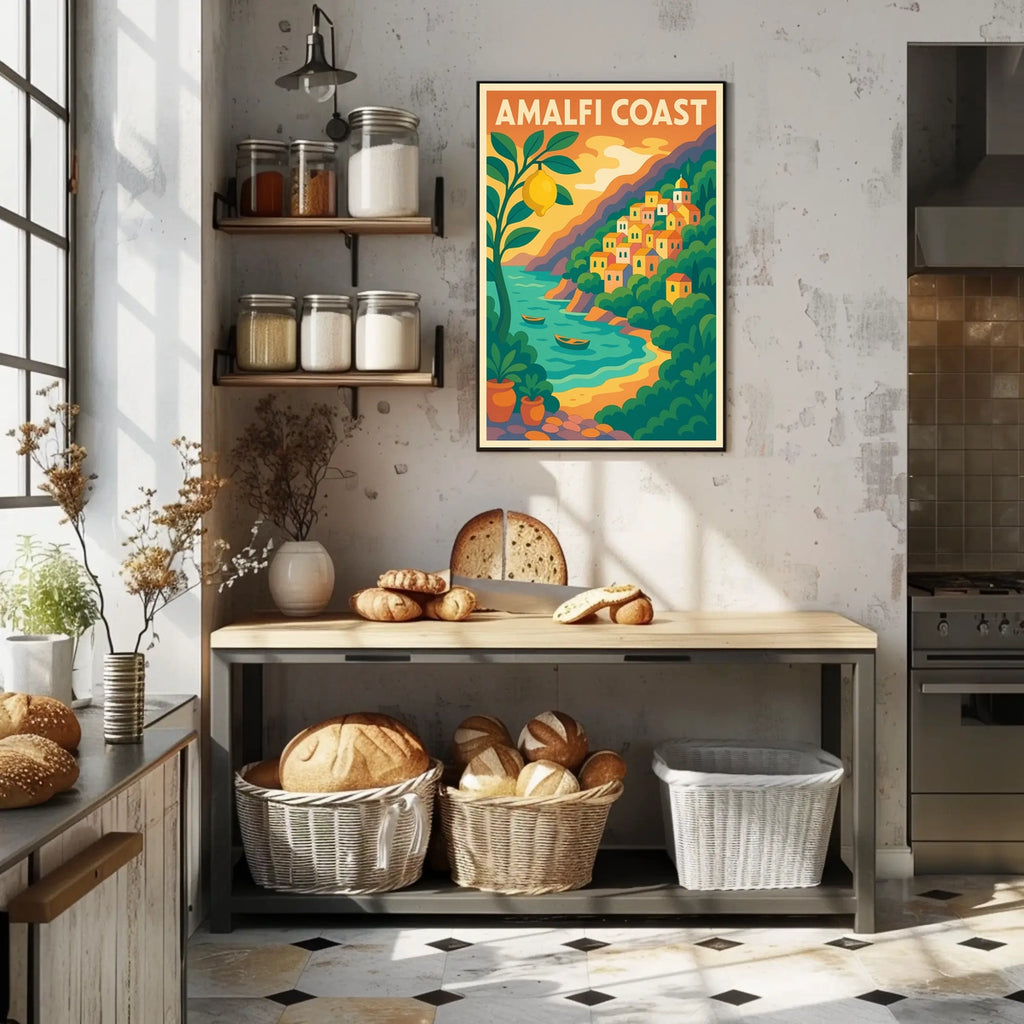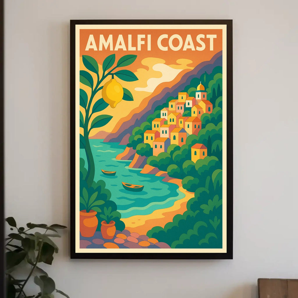 This poster captures the essence of Amalfi Coast Dreamscape, adding charm to any room with visuals inspired by real-world scenery.