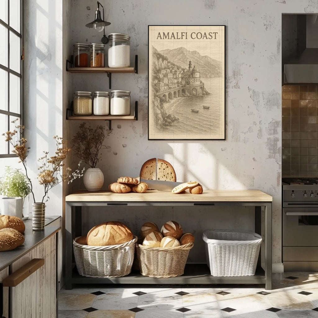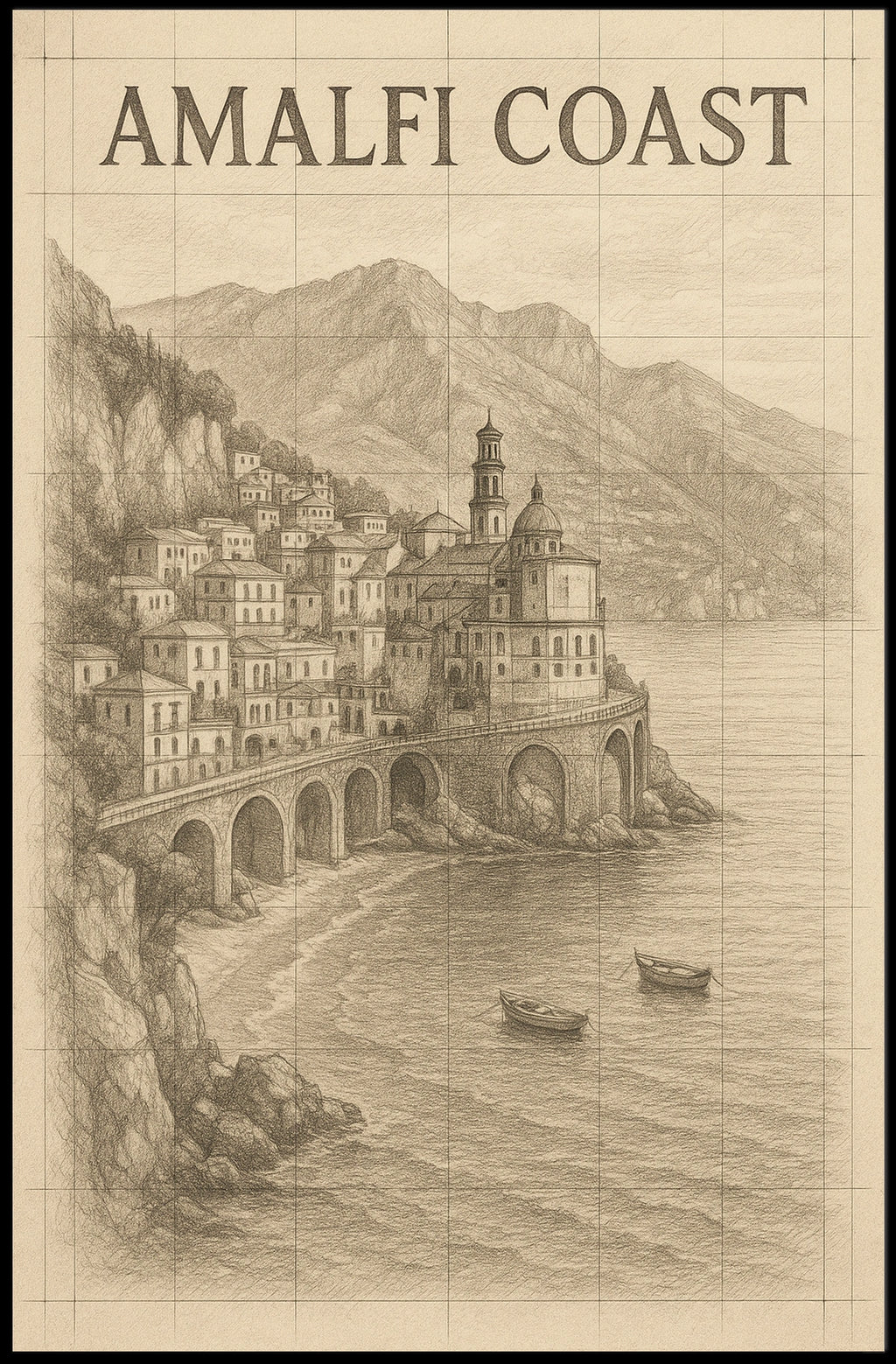 This poster captures the essence of Amalfi Coast Illustration. Designed for decor lovers and wanderlust spirits, this art print adds charm to any room with visuals inspired by real-world scenery.