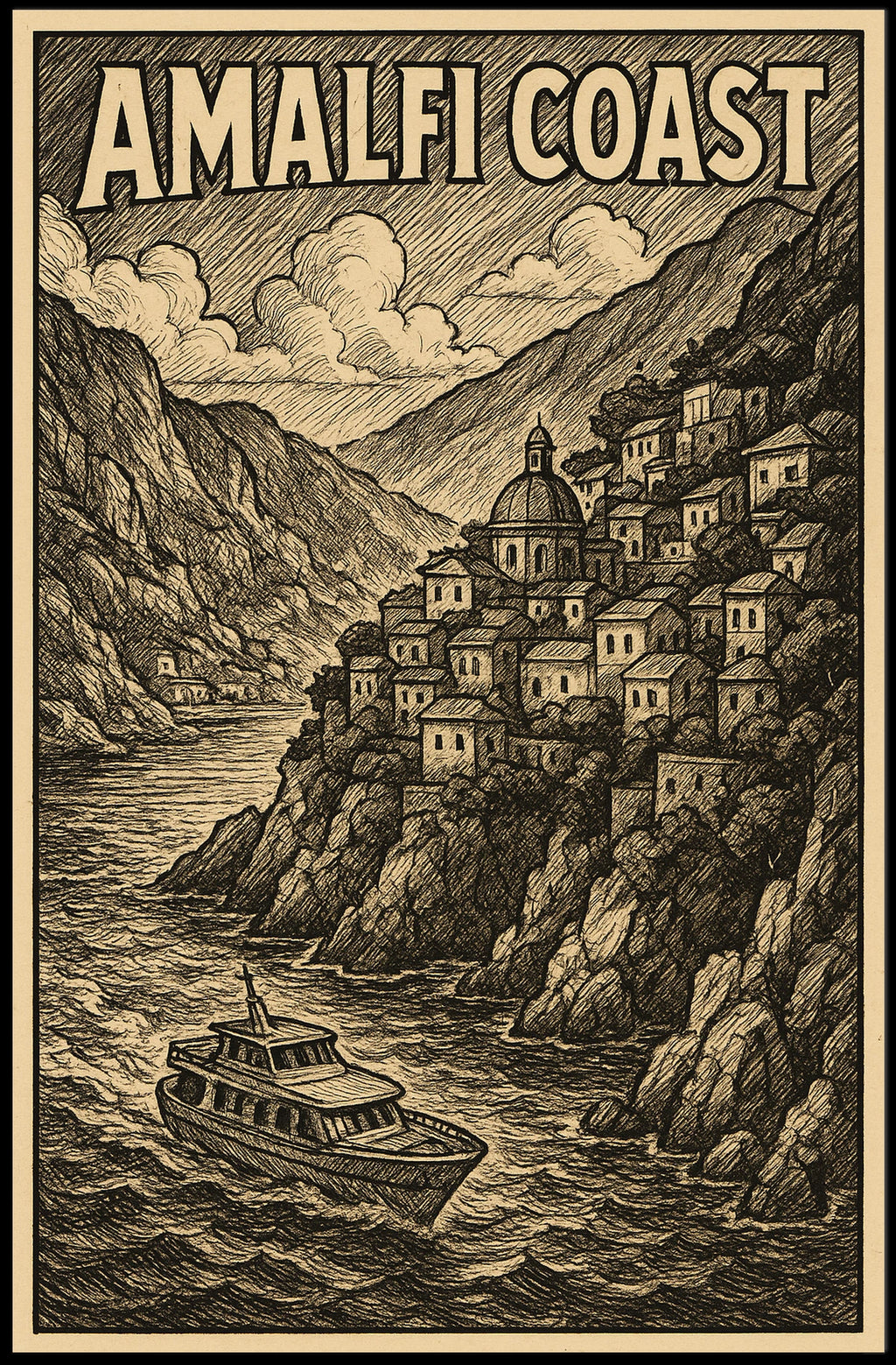Printed with precision and made to inspire, this artwork is more than decoration—it’s a conversation piece that connects travel, culture, and style. Bring Amalfi Coast Illustration Poster into your home, classroom, or office today and let your walls tell a powerful story.