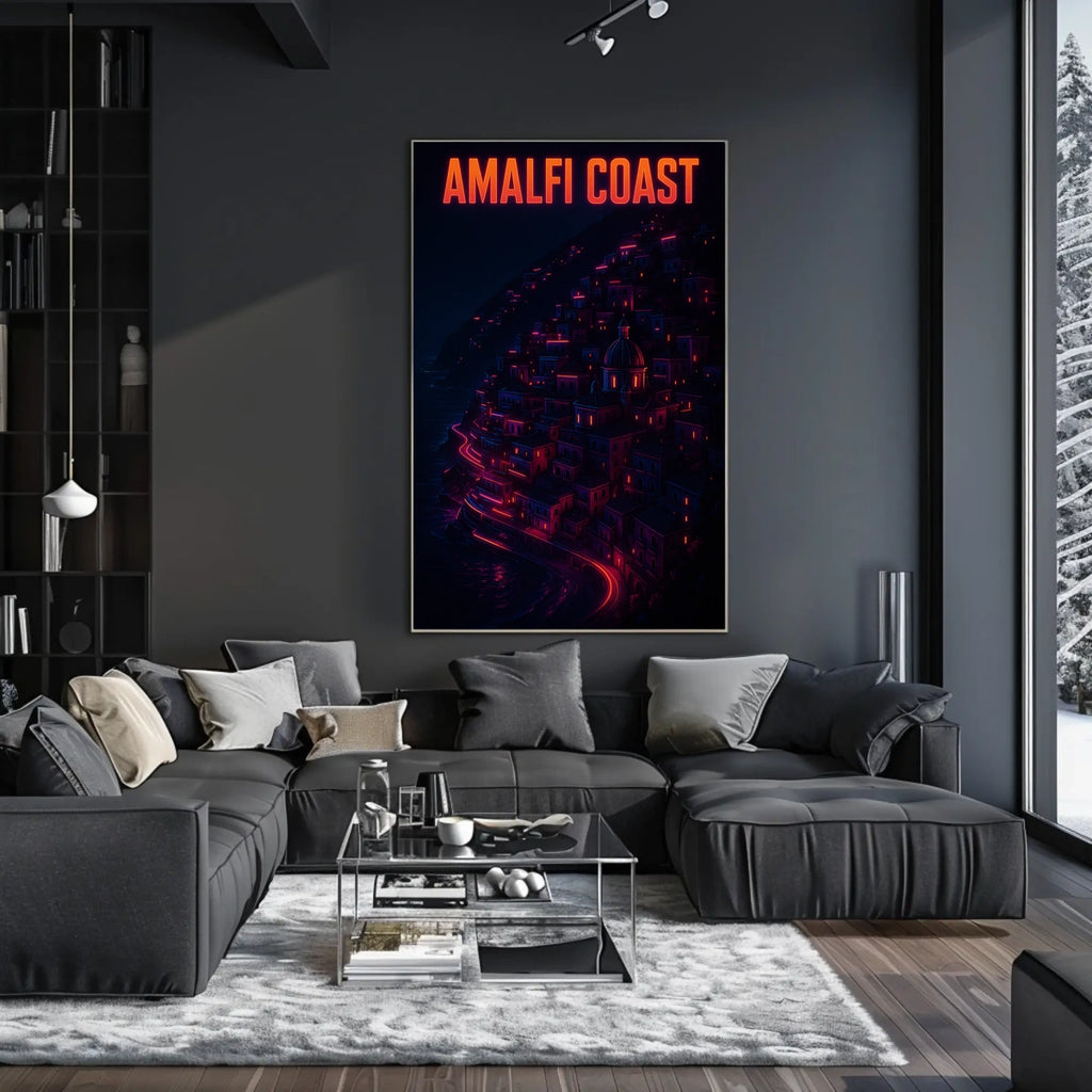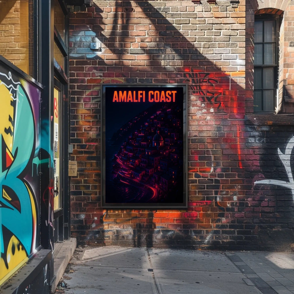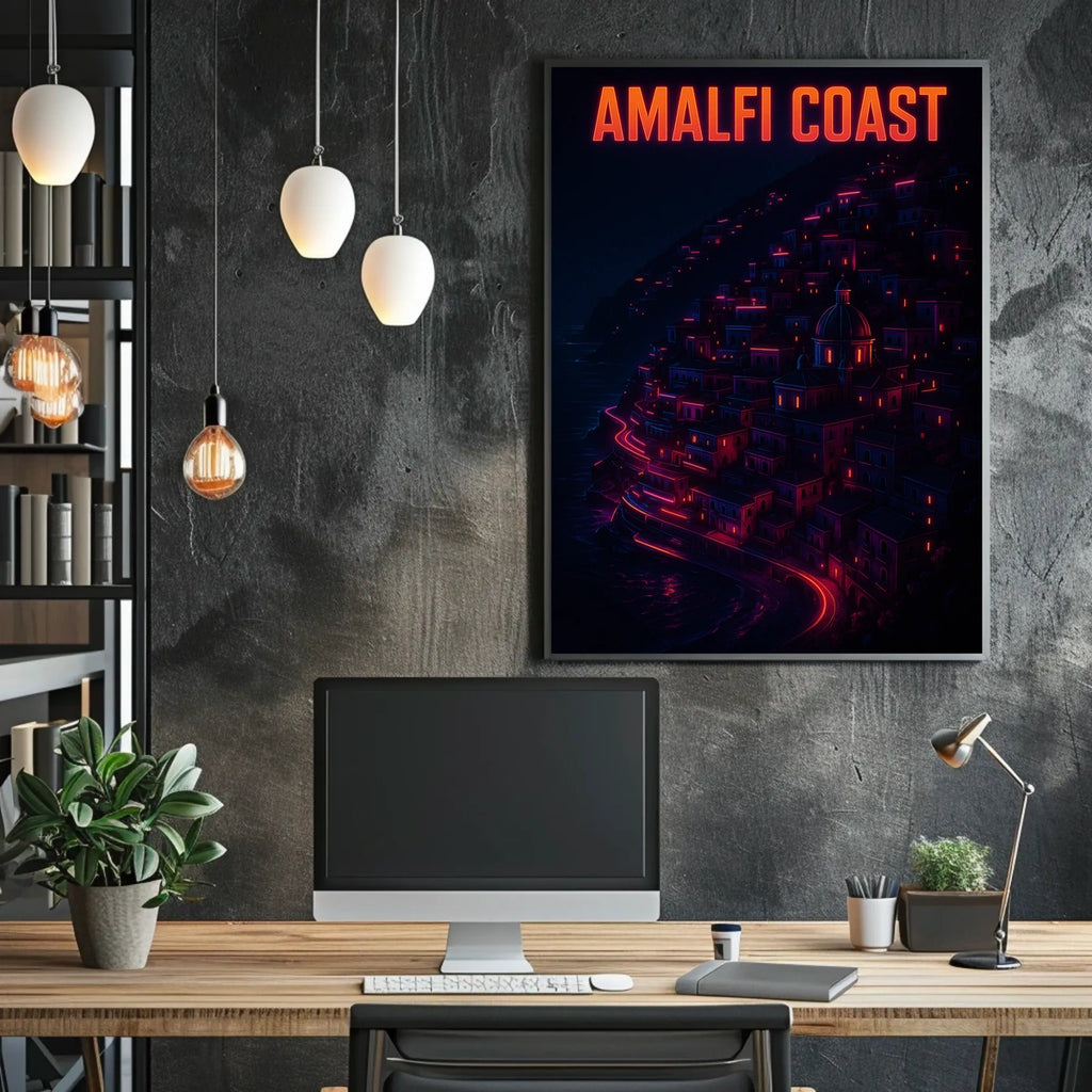 Celebrate the beauty of Amalfi Coast Neon Nightscape with this timeless poster. Designed for decor lovers and wanderlust spirits, this wall art captures the neon nightscape of the Amalfi Coast, adding charm to any room with visuals inspired by real-world scenery.