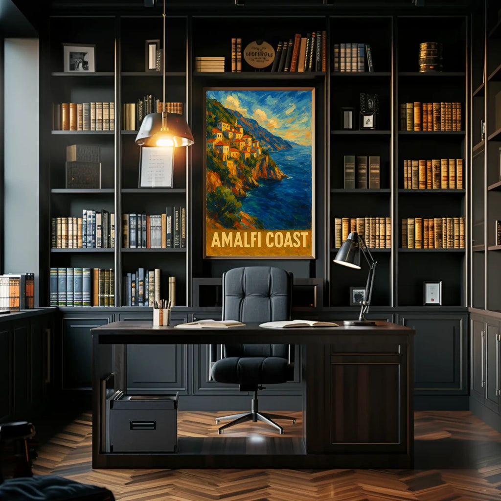Amalfi Coast Poster — a refined piece for homes, offices, and classrooms that brings a touch of Mediterranean allure to your space. This artwork is crafted to serve as more than decor—it’s a celebration of travel, culture, and style through vivid imagery.