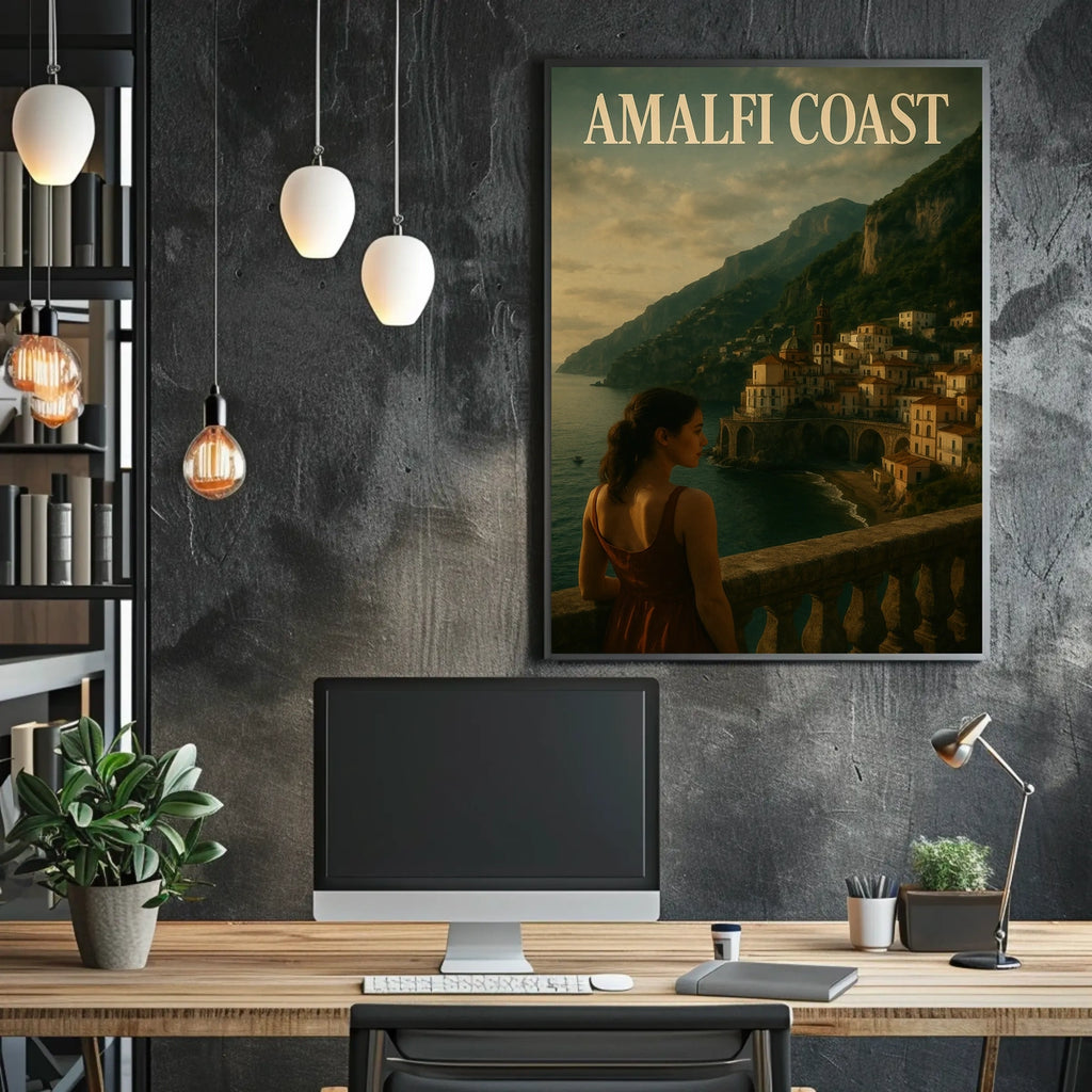 Perfect for living rooms, bedrooms, home offices, or classrooms, this Amalfi Coast poster adds a touch of coastal charm and wanderlust to any space. Include it in your decor to elevate everyday moments and inspire conversation.