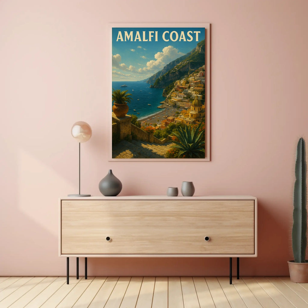 This poster captures the essence of the Amalfi Coast. Designed for decor lovers and wanderlust spirits, this art print adds coastal charm to any room with visuals inspired by real-world scenery.