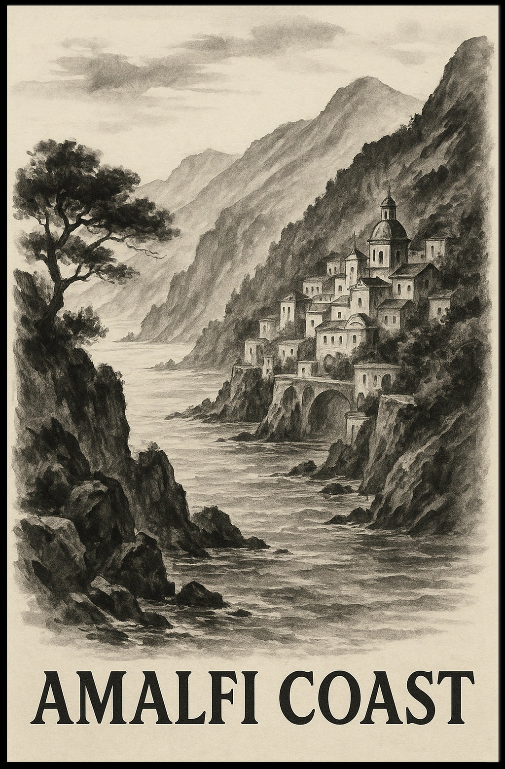 Amalfi Coast Poster — Celebrate the beauty of Amalfi Coast with this timeless wall art. Designed to capture its unique appeal, this piece is perfect for collectors, enthusiasts, or anyone who wants to bring meaning and inspiration into their space.
