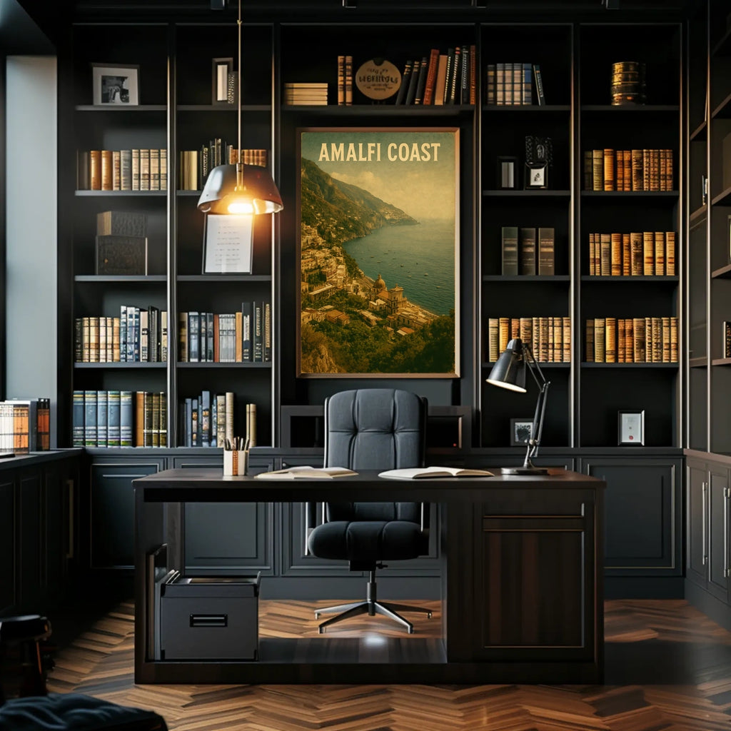 Whether hung in a living room, study, hallway, or workspace, this Amalfi Coast Vintage Travel Poster brings coastal charm and timeless style to your space. It pairs beautifully with eclectic decor and makes a memorable gift for fans of travel, coastal scenery, and classic poster art.