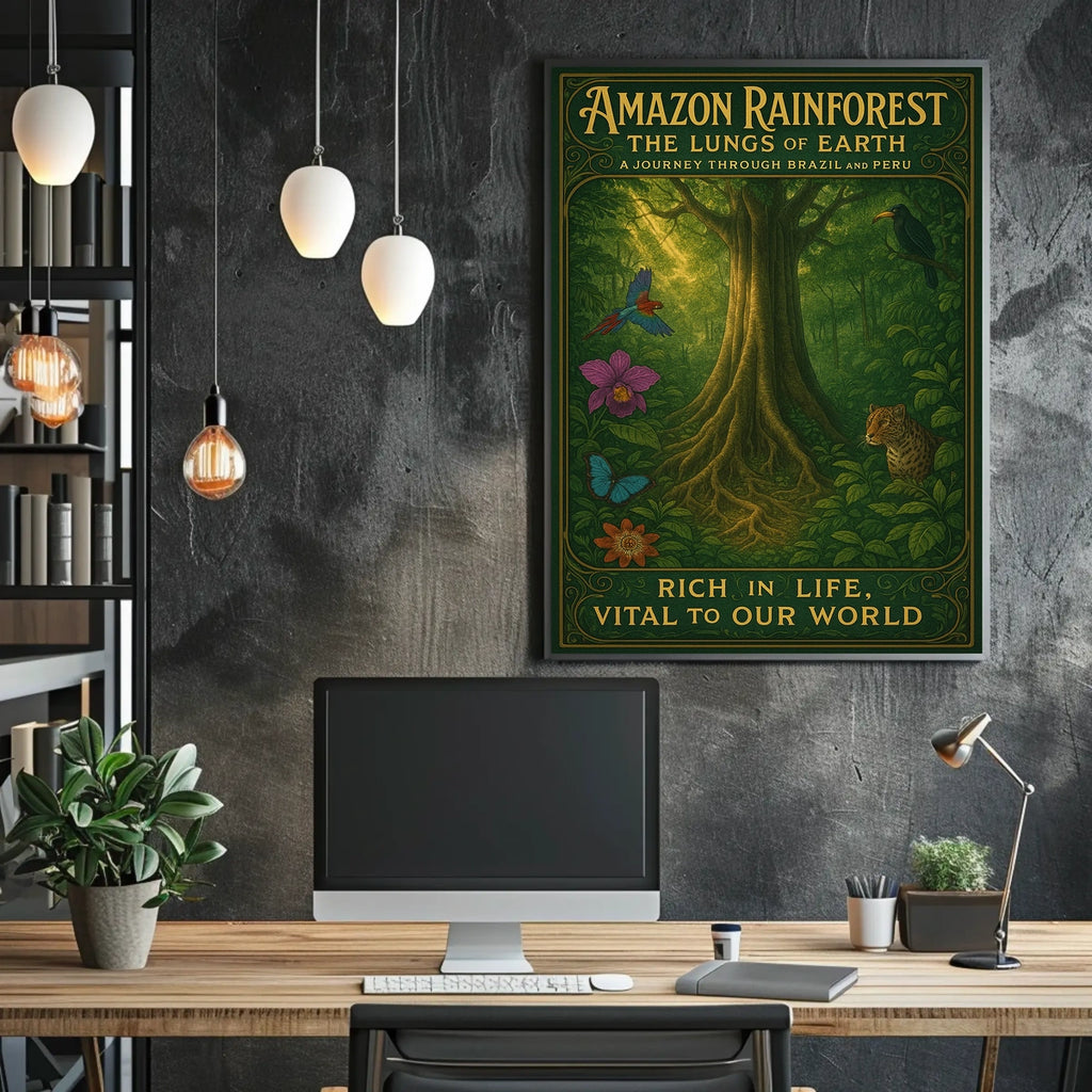 Bring the heart of the Amazon into your home with this striking poster. The Lungs of Earth captures the rainforest's lush greens, misty canopies, and sweeping horizons in a single, immersive print. Designed for decor lovers and wanderlust spirits, it adds character to any room and sparks a sense of adventure every time you glance at it. Printed on high-quality stock, it preserves depth and detail for a lasting, museum-quality feel.