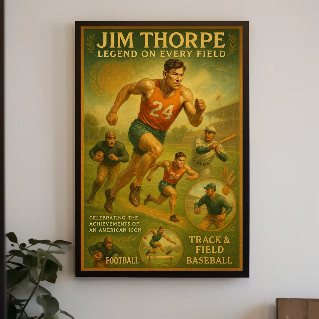 Intro: Celebrate an American sports legend with this captivating poster. Honoring a storied athlete and athlete legacy across track and field, baseball, and football, it blends bold imagery with a deep respect for sports history. Ideal for fans, collectors, and anyone inspired by greatness across generations.