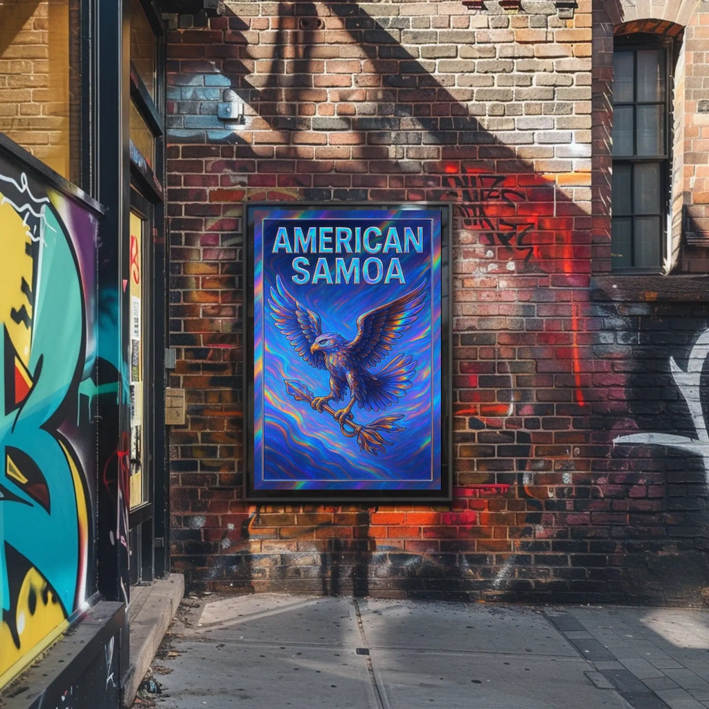 Perfect as a vibrant piece of wall art, this poster enhances any living room, bedroom, or workspace and serves as a scenic keepsake for fans of American, Samoa, eagle motifs, and cultural art.