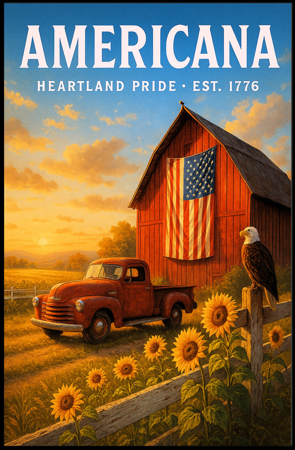 Ready to hang and transform your space — add the Americana Heartland Poster to your cart from PosterGoat today.