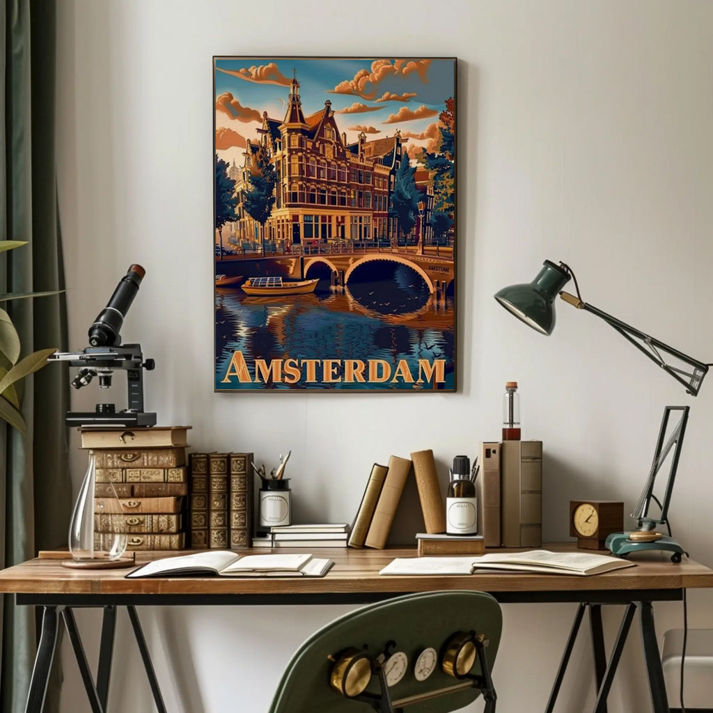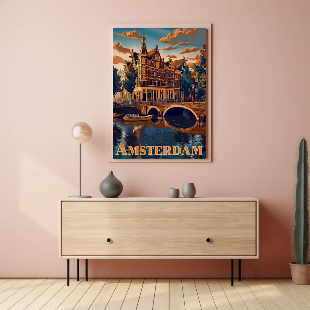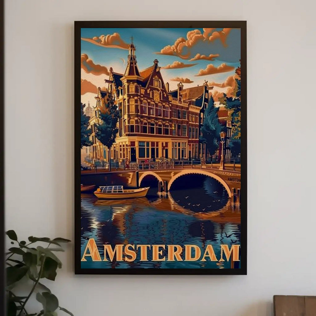 Bring the tranquil charm of Amsterdam’s canals into your space with this standout PosterGoat print — order now to elevate your walls with timeless travel artwork.