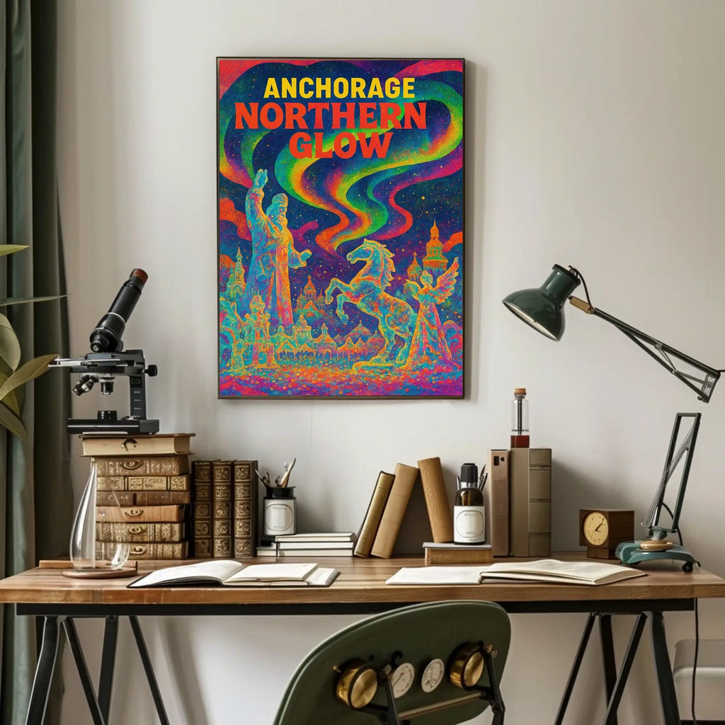 - Printed with precision and made to inspire, this artwork is more than decoration—it’s a conversation piece that connects nature, culture, and style. Bring Anchorage Northern Glow Poster into your home, classroom, or office today and let your walls tell a powerful story.