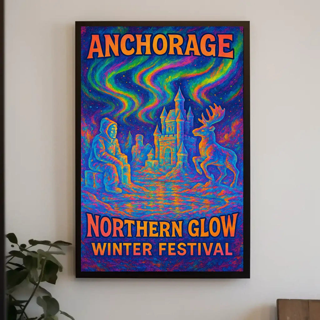 Printed with precision and made to inspire, this artwork is more than decoration—it’s a conversation piece that connects history, culture, and style. Bring Anchorage Northern Glow Winter Festival into your home, classroom, or office today and let your walls tell a powerful story. A scenic souvenir and gift-ready poster, perfect for art lovers and festival fans alike.
