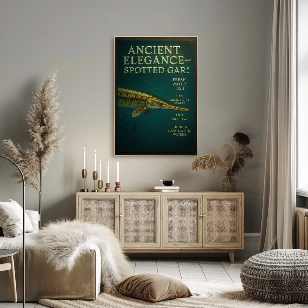 Immerse your space in timeless nature with the Ancient Elegance Spotted Gar Poster. This art print captures the graceful silhouette and evocative scenery inspired by real-world waterways, making it a refined pick for decor lovers and wanderlust spirits alike.